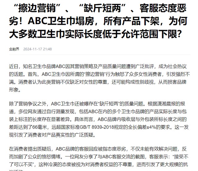 卫生巾这事儿,可不是小打小闹的产品问题,这关系到企业的良心啊!