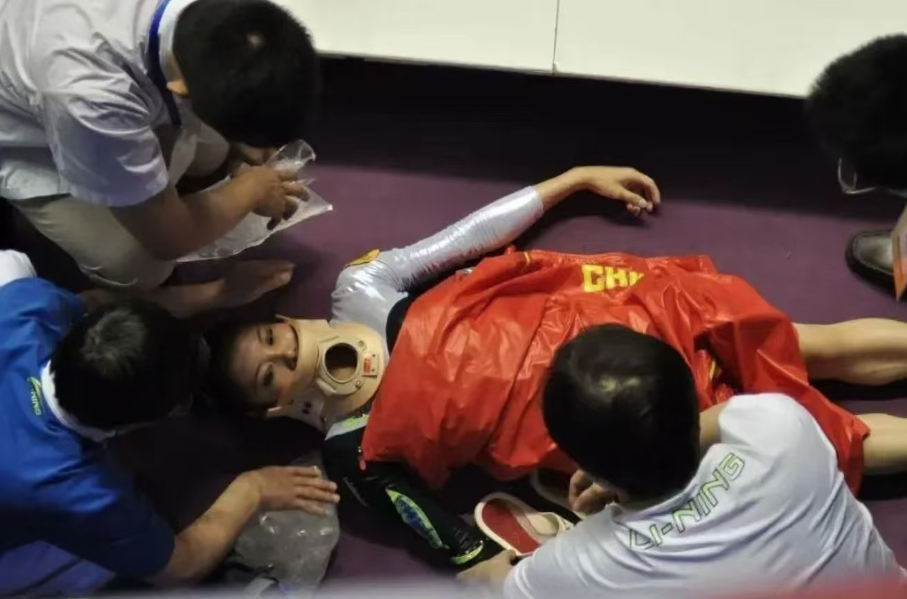 2012年5月11日,全国体操锦标赛暨奥运会选拔赛女子平衡木决赛上,吴柳芳下法出现失误,头部和颈部直接跌落在垫子上,当场发出一声巨响,脖子差点被扭断!