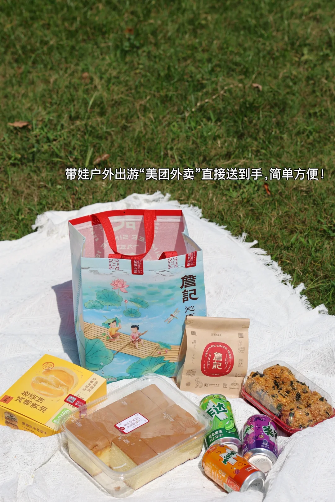 现在天气热准备食材也容易坏,我们出门都点“美团外卖”直接送到公园,娃玩饿了直接吃、简单又方便!