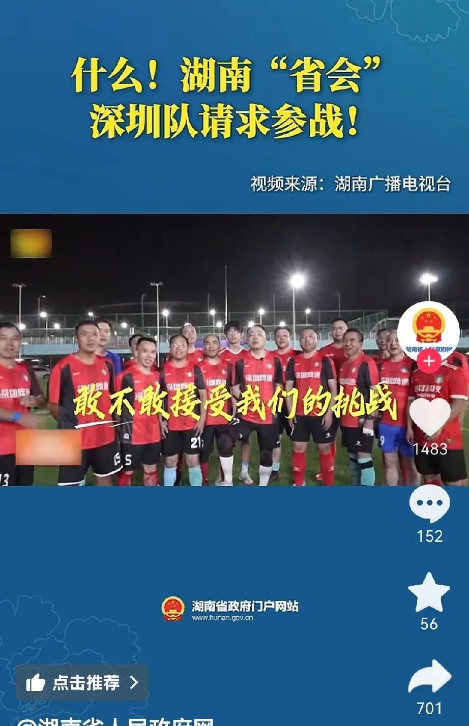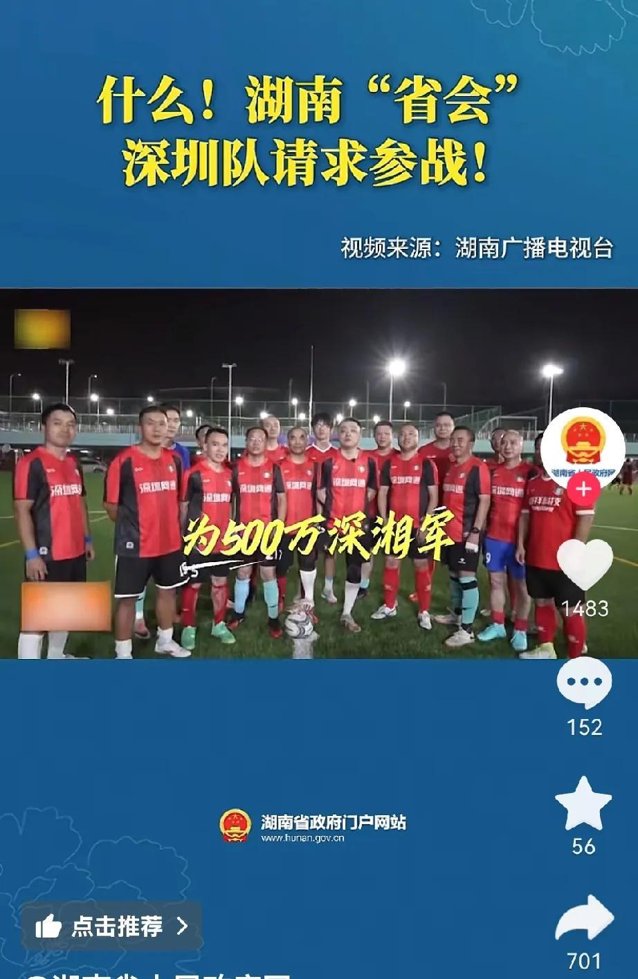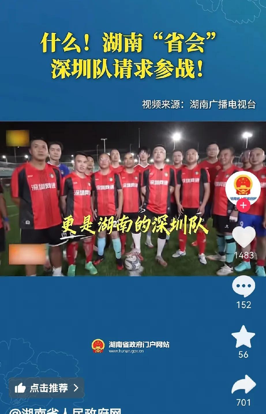 有意思!湖南人省会深圳队申请出战湘超 近日据湖南省人民网报道,湖南省会深圳队申请出战湘超,队中都是在深圳拼搏的湖南人,网上都说深圳才是湖南的省会,光深圳就有500多万湖南人,称为湖南省会一点不为过。 这是个不错的提议,湖南人口最近20年流失了至少一千万,大部分都去了广东,而深圳无疑是湖南人最多的,小编身边的表兄弟姐妹、同学朋友基本上都有过去深圳工作经历,这是不成文的规定,不读书就去广东。 湖南人都是苦长沙久已,这次很多球队都喊出了打败长沙的口号,因为下面县市很多大项目都被长沙抢走了,因此湖南也被称为长沙和他的13个充电宝,这次深圳队申请出战,更是打脸长沙,期待湘超快点开始,友谊第三,比赛第二,赢长沙才是第一,期待13个充电宝大战长沙,谁赢长沙就支持谁!