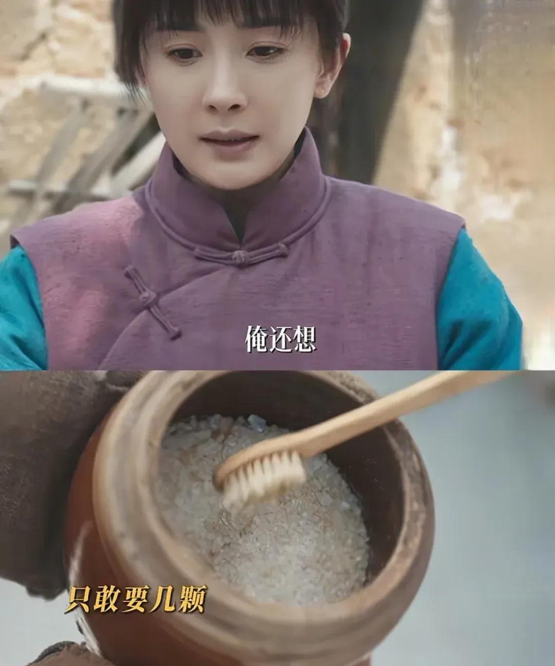 《生万物》绣绣在婆家要盐刷牙,被公公嫌弃败家[笑哭] 绣绣因为对亲爹失望了,所以赌气嫁给了一个穷人家,第一天绣绣拿着一个包,婆婆问她干嘛去,她说她要刷牙,但是婆婆不知道刷牙是什么,就问她要什么 绣绣要了温水,还要了盐,但是也没多要盐,只沾了几颗,因为知道穷人家盐值钱,绣绣是地主家的女儿,以前有专门刷牙的盐罐子 婆婆虽然不理解,但是绣绣要什么就给什么,公公不一样,公公是和绣绣亲爹一样的守财奴,看绣绣刷牙要盐,就心疼的要死[笑哭] 所以100年前真的是那样吗?穷人家连牙都不刷