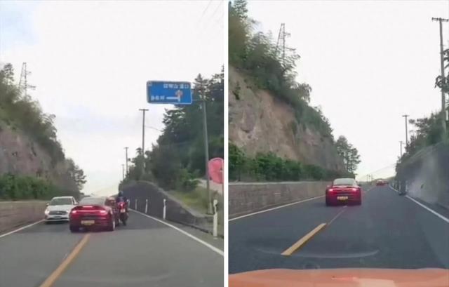 在保时捷在超车时撞上了正常行驶的摩托车,骑手当场被撞飞后,接下来发生的事情,却比事故本身更让人吃惊。