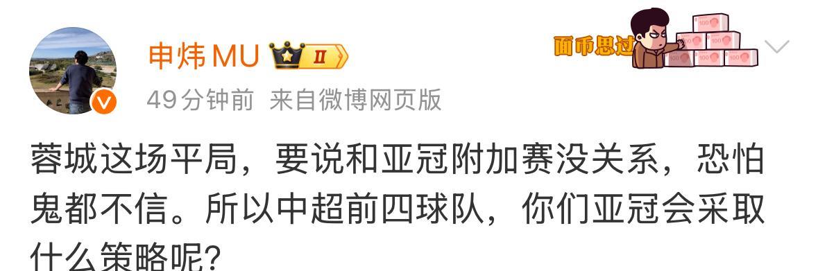 天津津门虎跟队记者申炜认为成都蓉城之所以会在主场和青岛海牛战平,亚冠附加赛的影响