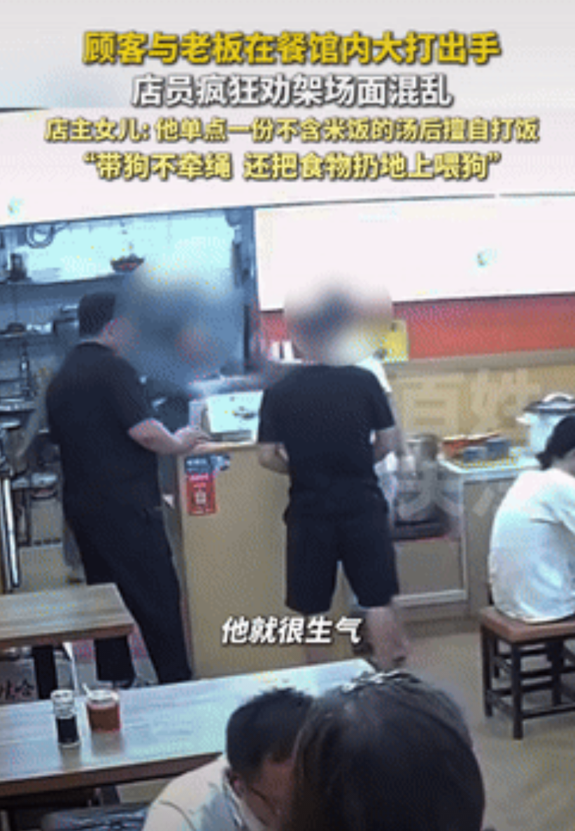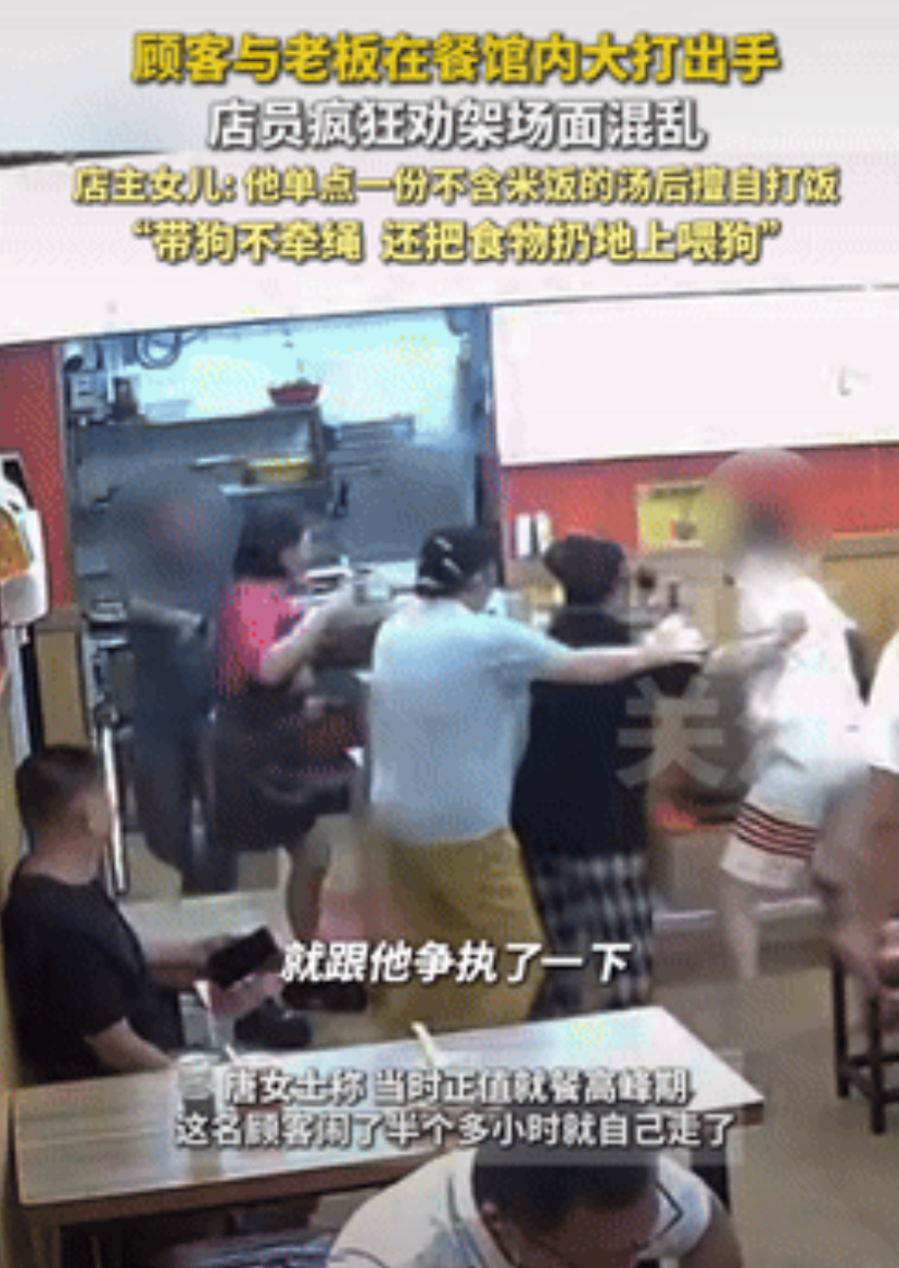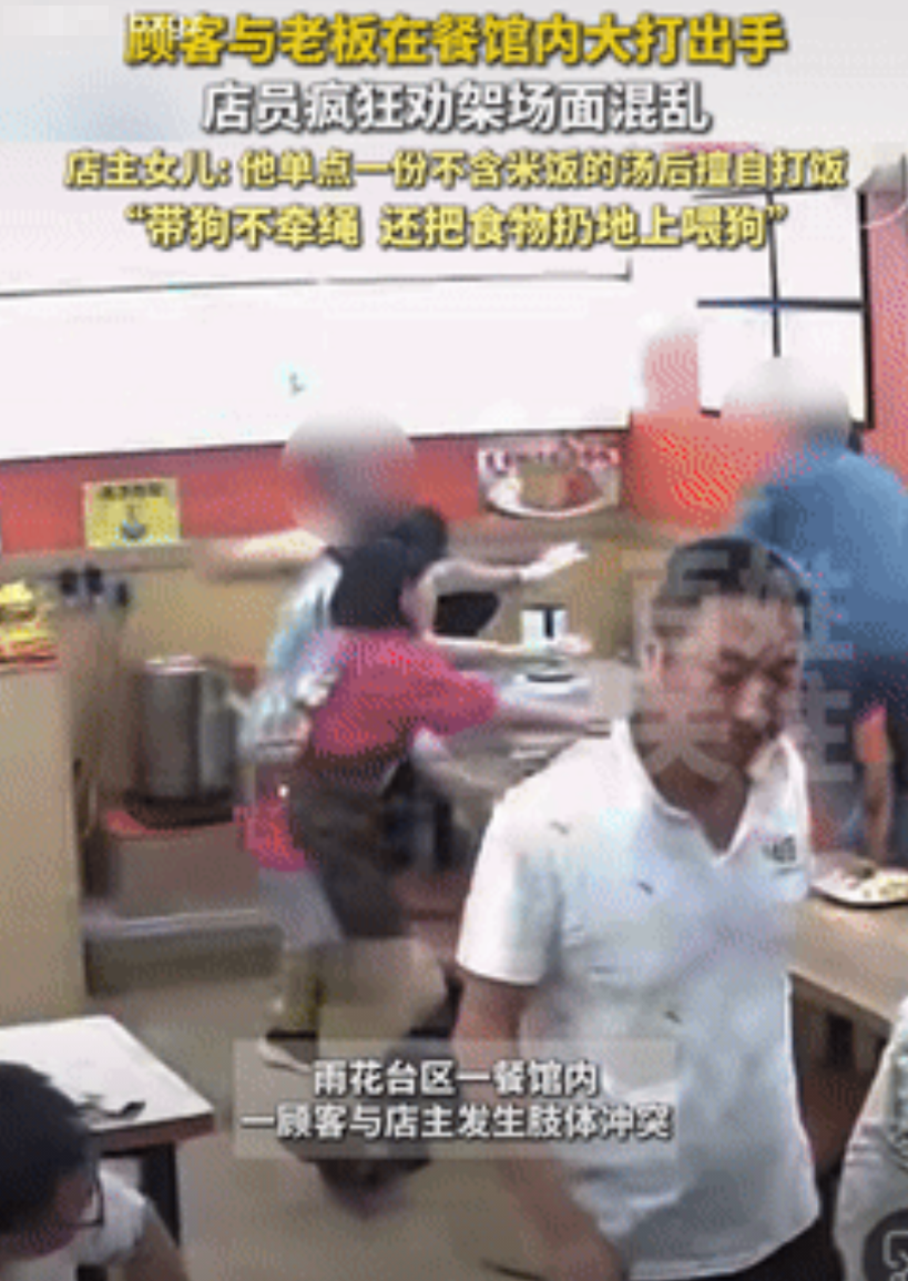 太没素质了吧!江苏南京,一男子去饭店单点了一份汤,店员告知他需要米饭的话,是两元一份,可他却无视提醒,擅自闯进后厨,店员看到后也没阻拦,不料,随后发生的一幕,却让店员再也忍不下去了! 生活中总有些人为所欲为,完全无视公共秩序和他人感受,仿佛“素质”二字从未出现在他们的字典里,近日南京一家饭店发生的事,就把这种无德行为展现得淋漓尽致。 那天傍晚,南京某饭店进来了一位男子,他怀里还抱着一条没牵绳的狗,他径直走到角落的桌子旁坐下,点了一份单汤,店员上菜时特意提醒:“如果等会儿想吃米饭,我们是2元一份,需要的话跟我说就行”,男子当时没吭声,只顾着喝汤。 喝了大概十分钟,男子突然起身,没跟任何人打招呼,径直往后厨闯,后厨本是饭店重地,按规矩客人不能进,但店员看他只是想去打碗米饭,想着一份米不值多少钱,没必要计较,就没拦着。 可接下来的画面,让店员瞬间火了——男子端着米饭回到座位,竟然直接把整碗饭倒在地上,又从包里掏出几根骨头丢过去,招呼着狗过来吃,白花花的米饭混着骨头渣散落一地,狗兴奋地扑上去狼吞虎咽,溅得周围都是污渍。 店员赶紧上前劝阻,没想到男子立刻炸了,拍着桌子大声嚷嚷:“我吃我的饭,喂我的狗,关你什么事?你们老板呢?叫他来!”他一边吼,一边用手指着吧台方向的老板,态度嚣张至极。 老板本来不想惹事,但看他把店里弄得一团糟还蛮不讲理,也忍不住了,两人越吵越凶,最后动起了手,周围客人赶紧拉架,才算没让冲突升级,大概半小时后,男子骂骂咧咧地带着狗走了,留下一地狼藉。 说起来,带宠物进餐厅本就需要格外注意,可这位男子不仅让没牵绳的狗在店里乱窜,还把食物扔在地上喂狗,简直是把公共场合当成了自家院子,毫无素质可言。 小编想起之前刷到的一个博主,同样是带狗去餐厅,却做得让人挑不出错,她提前打电话问清楚餐厅是否允许宠物进入,得到同意后才去,全程给狗拴着牵引绳,让它乖乖待在座位旁边。 喂狗时用自带的狗盆,从不在地上喂食,离开前还特意用消毒湿巾擦干净狗待过的地方,把产生的垃圾打包带走,同样是带狗吃饭,差距却大得离谱,一个只顾自己方便,无视他人感受,一个处处为别人着想,把“尊重”二字刻在细节里。 其实,素质从来不是什么高深的东西,就是懂得在公共场合约束自己,不影响别人,希望这位男子能好好反思一下,自己的行为到底给别人添了多少麻烦,毕竟,没人有义务为你的“没规矩”买单,真把别人惹急了,最终难堪的还是自己。 对此,您怎么看?