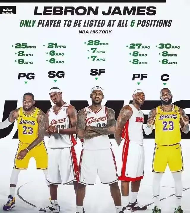 美媒最新曝光:老詹生涯在控卫、分卫、小前、大前、中锋5个位置都留下全明星级数据—