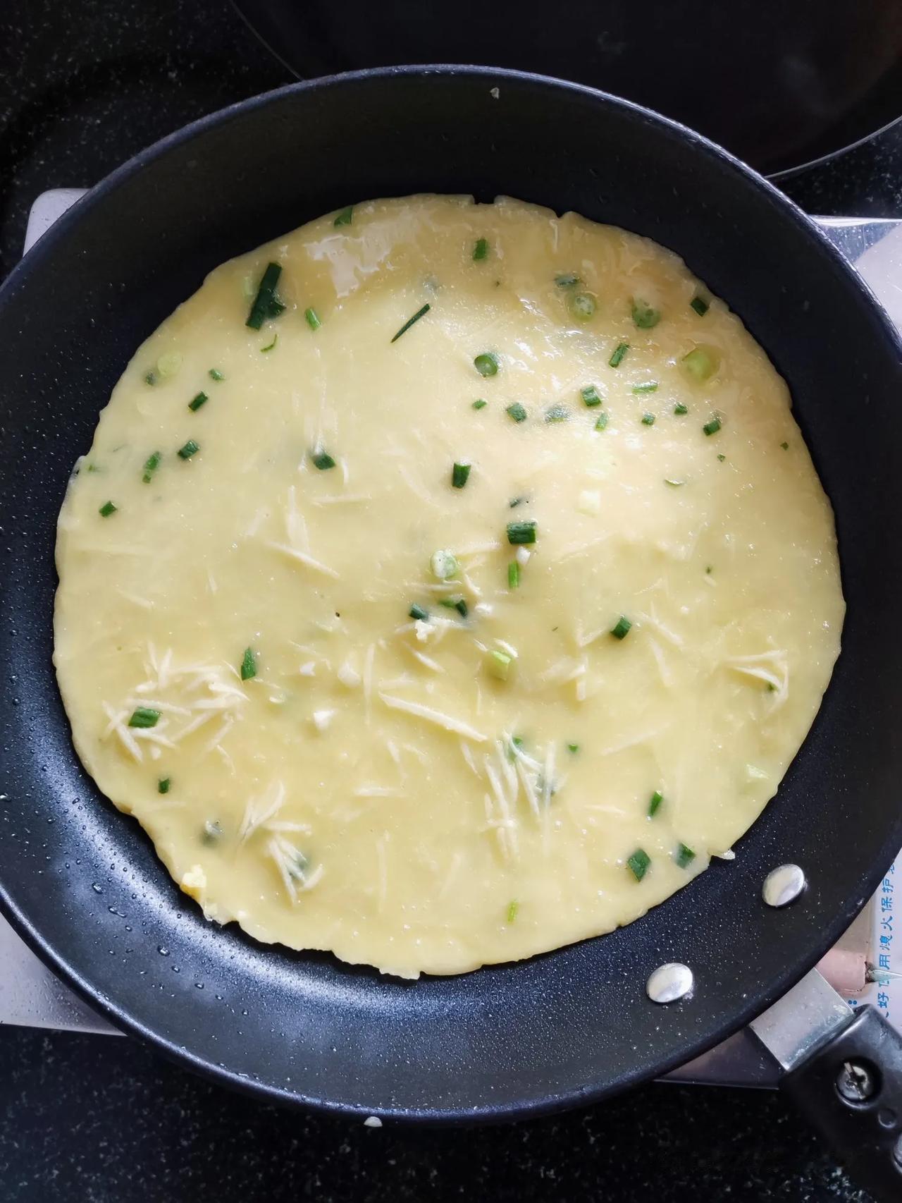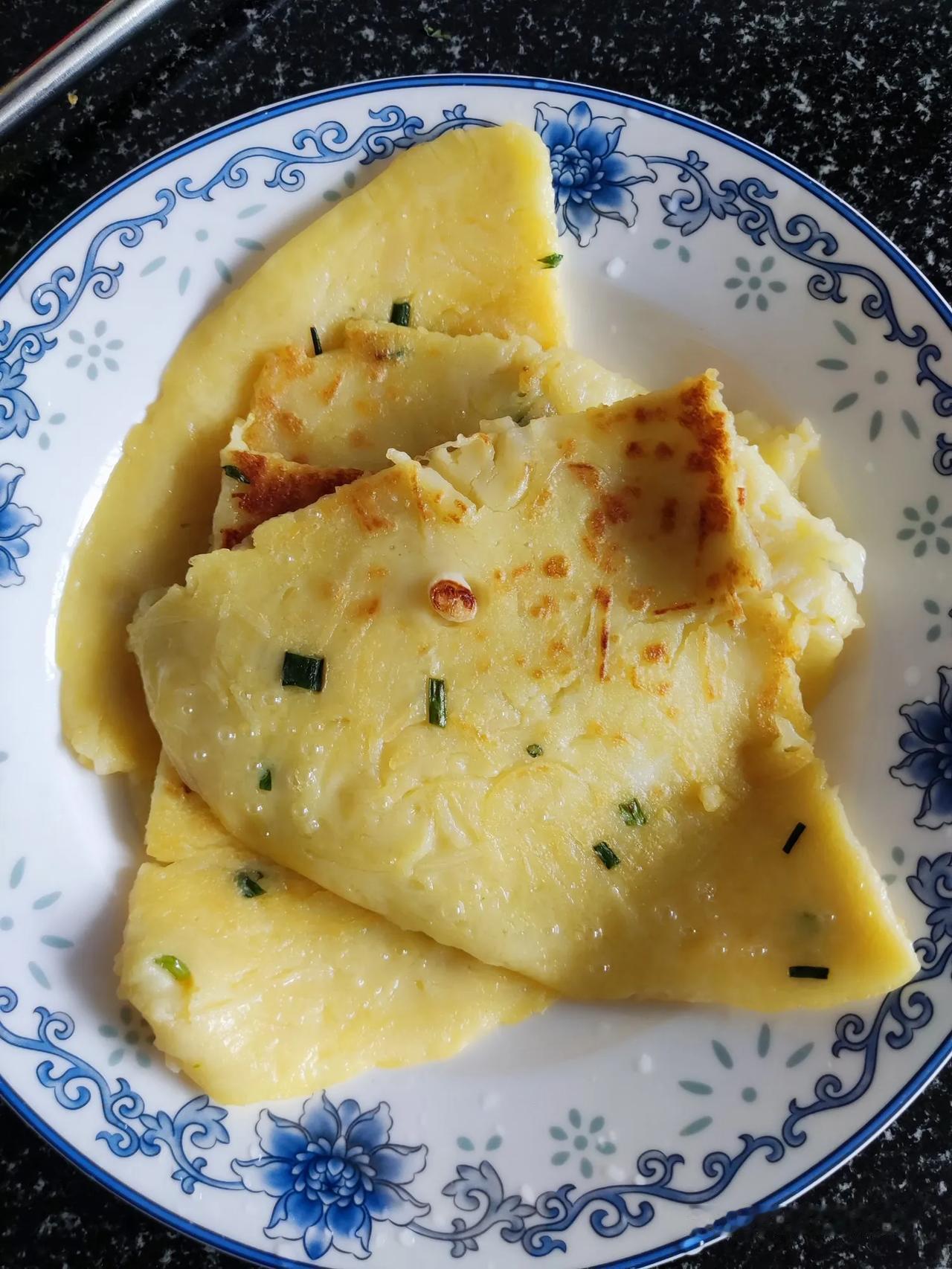 今日午餐 杂粮粥+土豆鸡蛋饼+香肠 上次的鸡蛋饼没有加土豆丝,这次加的土豆丝更加美味了哦![呲牙] 应该再加个凉菜或者榨菜,这样更加开胃啦![奸笑]