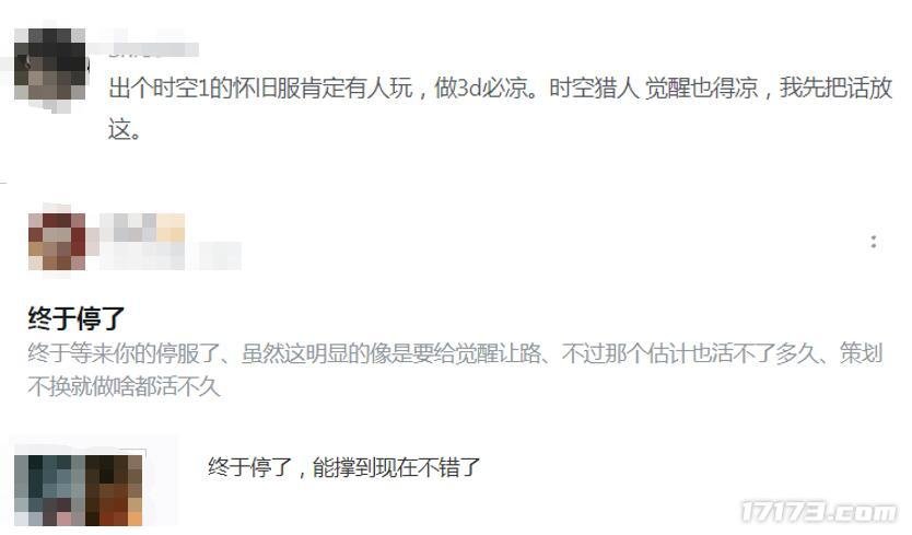 还有网友吐槽,终于等来你的停服了,虽然这明显的像是要给《时空猎人:觉醒》让路,不过策划不换就做什么都活不久。还有网友感慨,终于停了,能撑到现在不错了。
