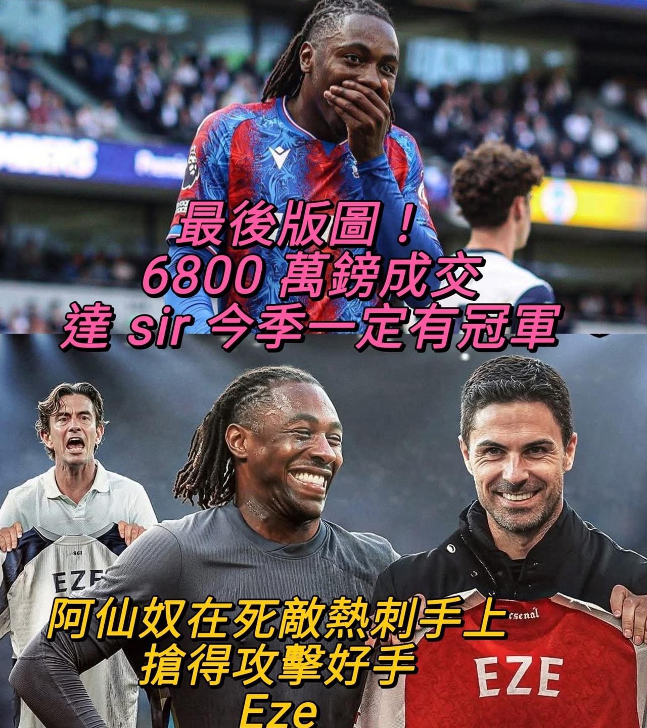 突发!离夏窗关闭还剩10天: 一觉醒来,原本即将加盟热刺的埃泽,居然加盟了阿森纳? ! 哈弗茨,伟大的受伤。 阿森纳,伟大的截胡! 阿森纳签下埃泽,埃泽是一位进攻型中场,前场多个位置都能踢,相信应该会让他更多地在左边锋位置活动,买他来大概率就是顶替马丁内利的。 上赛季,水晶宫赢得了足总杯冠军,其中在决赛打败了曼城。上两场比赛,一场是社区盾,一场是英超揭幕战,水晶宫先是击败了利物浦赢得社区盾冠军,接着又在英超首轮战平切尔西。 这三场比赛,埃泽都有亮眼的发挥,他是水晶宫的头号球星。 买了那么多人,如果比赛过程还是一坨屎,最终还是没有冠军,阿尔特塔真的难辞其咎。