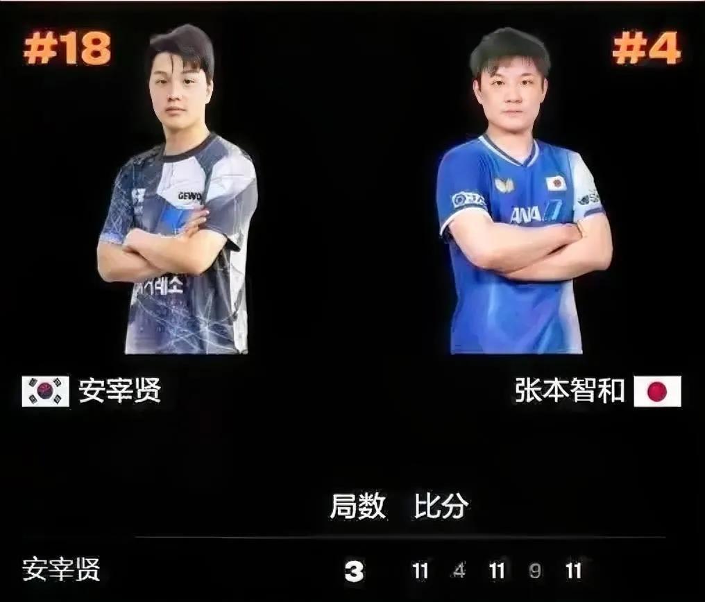 张本智和这小子被“宰”了! WTT欧洲大满贯瑞典站男单1/8决赛,张本智和2-3不敌韩国选手安宰贤,无缘八强!看来安宰贤专门宰杀不贤之人,张本智和这个跟头栽得实在是不轻啊! 本场比赛,安宰贤主宰比赛节奏,张本智和是霜打的茄子蔫巴了!这小子被人家打闭嘴了,全程都不会吼叫了! 打到决胜局8-10的时候,张本智和申请了鹰眼挑战,这小子认为安宰贤回球无效擦侧边,结果通过TTR判定,安宰贤回球打上了台面! 最终张本智和挑战失败!赛后安宰贤仰天怒吼挥拳庆祝,而张本智和则像泄了气的皮球一样,这小子终于低下了头。