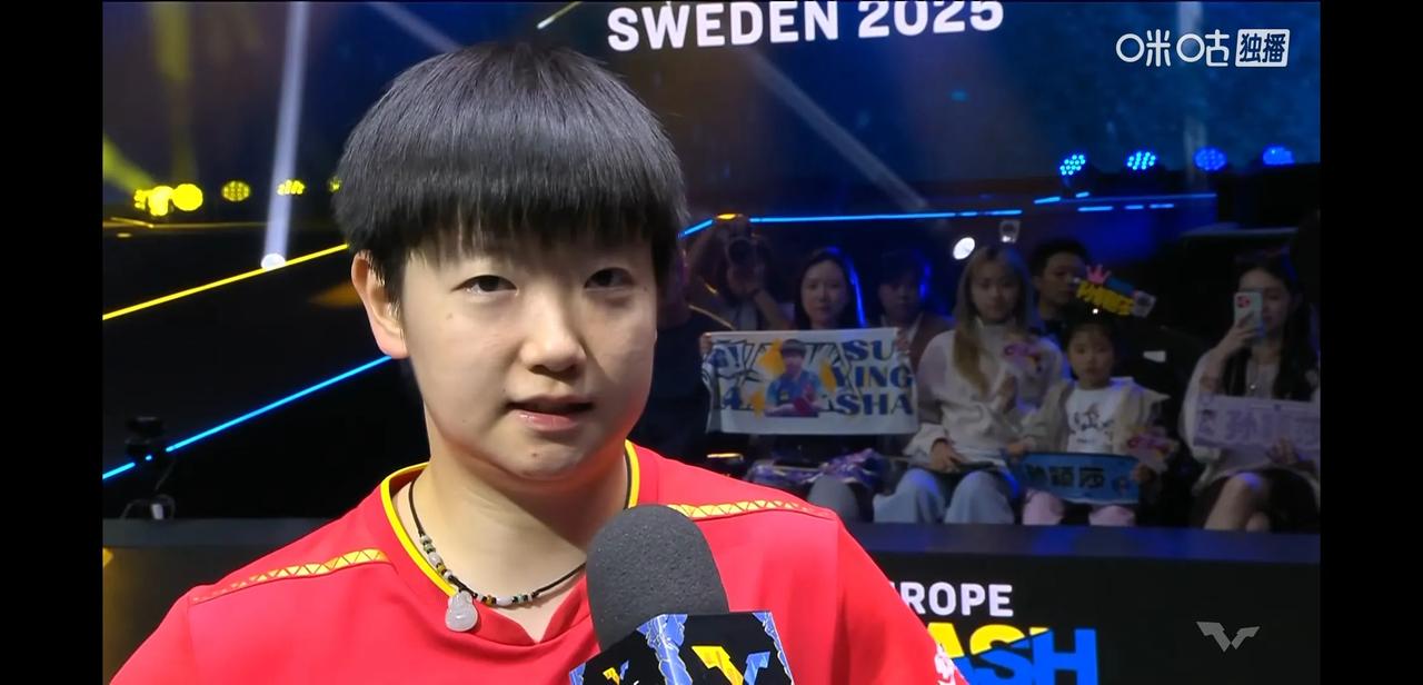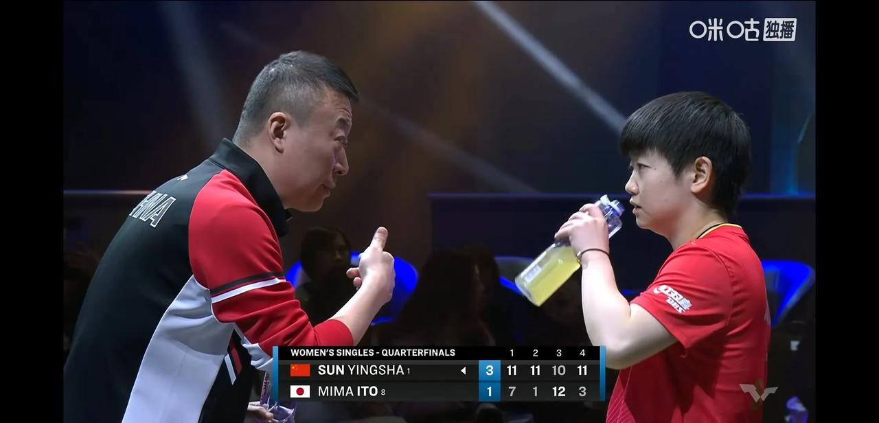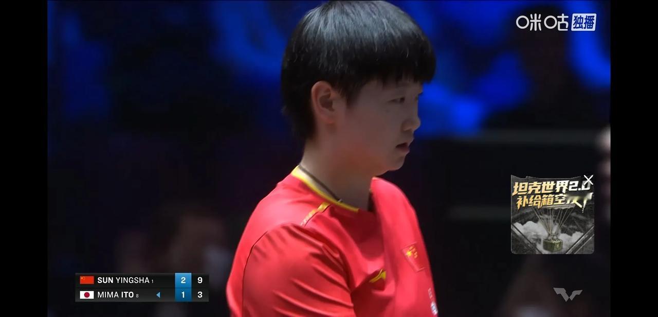 WTT欧洲大满贯瑞典站女单1/4决赛, 今天孙颖莎国乒第一个出场, 大比分4:1伊藤美诚。 第一局11:7莎莎拿下, 第二局孙颖莎送伊藤美诚了个11:1, 没有想到第三局伊藤美诚能将分反超并拿下。 当然后面的比赛莎莎也没给伊藤美诚机会了, 第四局第五局分别以11:3,11:4结束 恭喜孙颖莎选手晋级四强, 接下来单打是半决赛了。