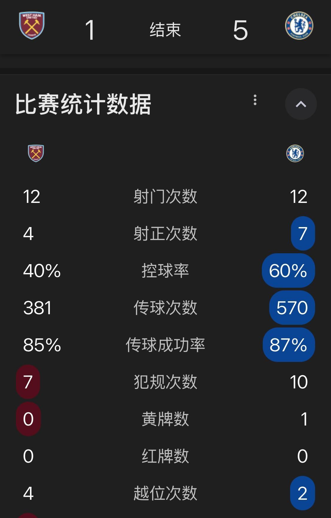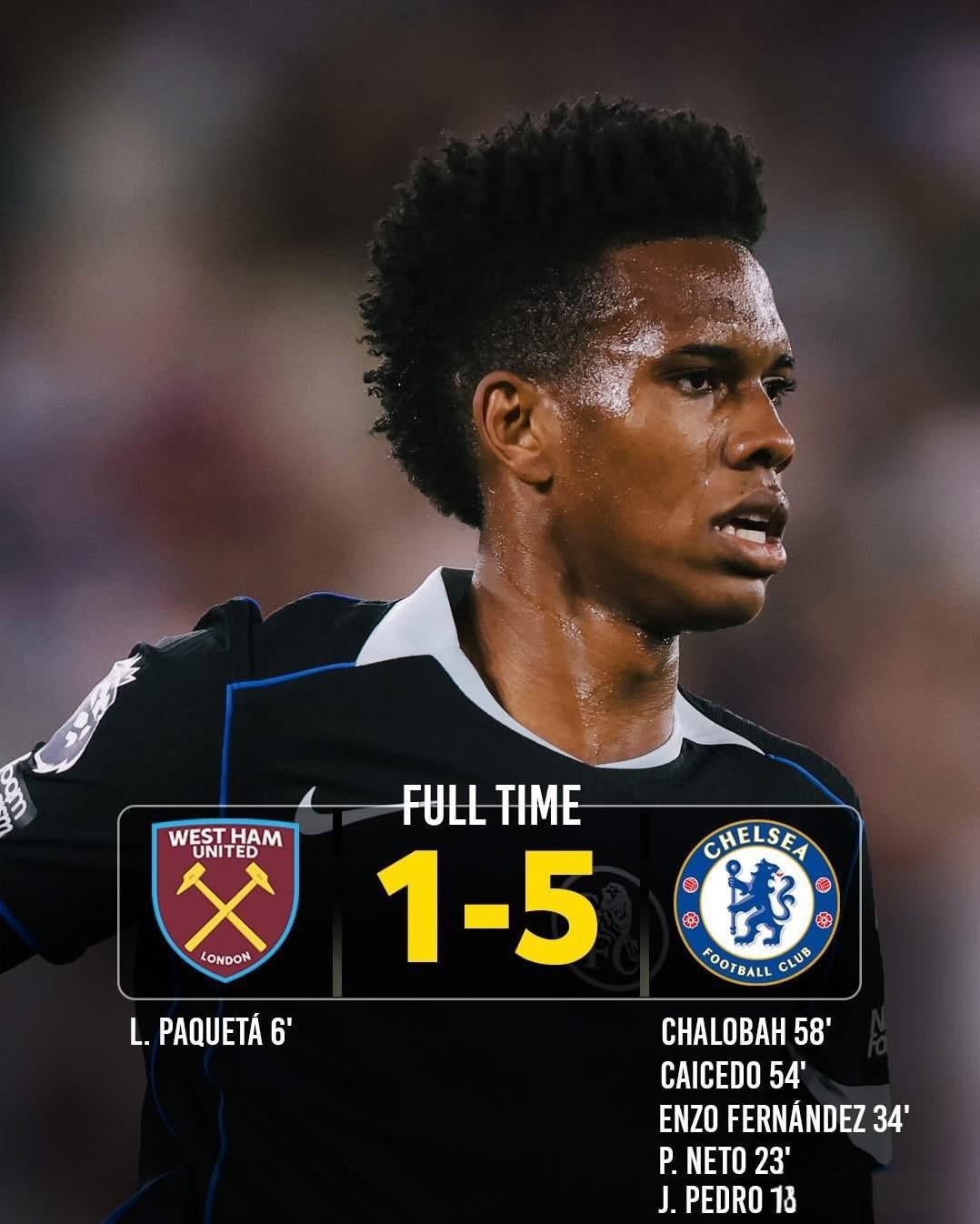 英超第2轮,切尔西再不取胜的话,就将远远落后于BIG 6了,对于想在本赛季成为争冠球队一份子的蓝军来说,这是绝对不能发生的。 没想到,开场仅仅6分钟,切尔西就丢球了,帕奎塔世界波破门,西汉姆在主场1比0领先! 难道真的要连续两轮不胜?非也! 切尔西很快扳平比分,并在上半场结束的时间,已经完成了3比1的逆转,下半场再进两球,最终比分定格在5比1,蓝军收获了一场酣畅淋漓的大胜,终于取得赛季首胜。 首发的新援中锋德拉普踢得很聪明,虽然没有取得进球,但他在前场作为支点的牵制力,在这场比赛展现出来了。 也因为德拉普的存在,身后的佩德罗、内托等人踢得非常舒服,佩德罗完成1射2传,内托则是取得了一个进球。 上轮0比0战平水晶宫只是假象,此役才是真正的切尔西。 别忘了,此役帕尔默是没有出场的,因此这还不是全体蓝军呢!