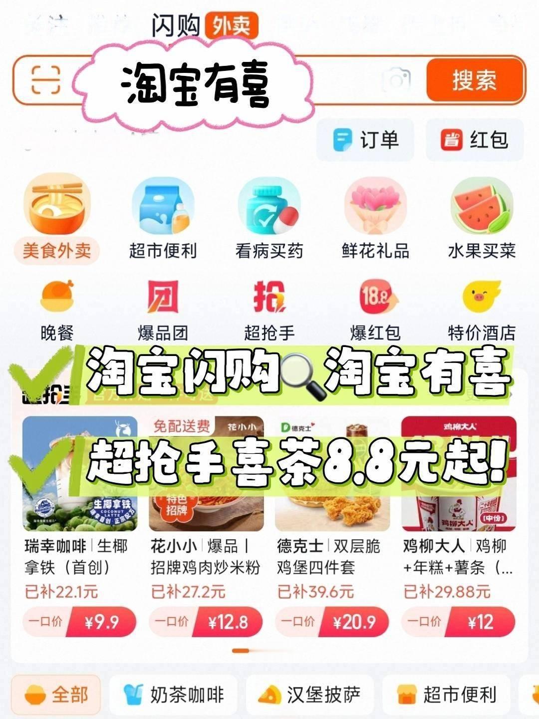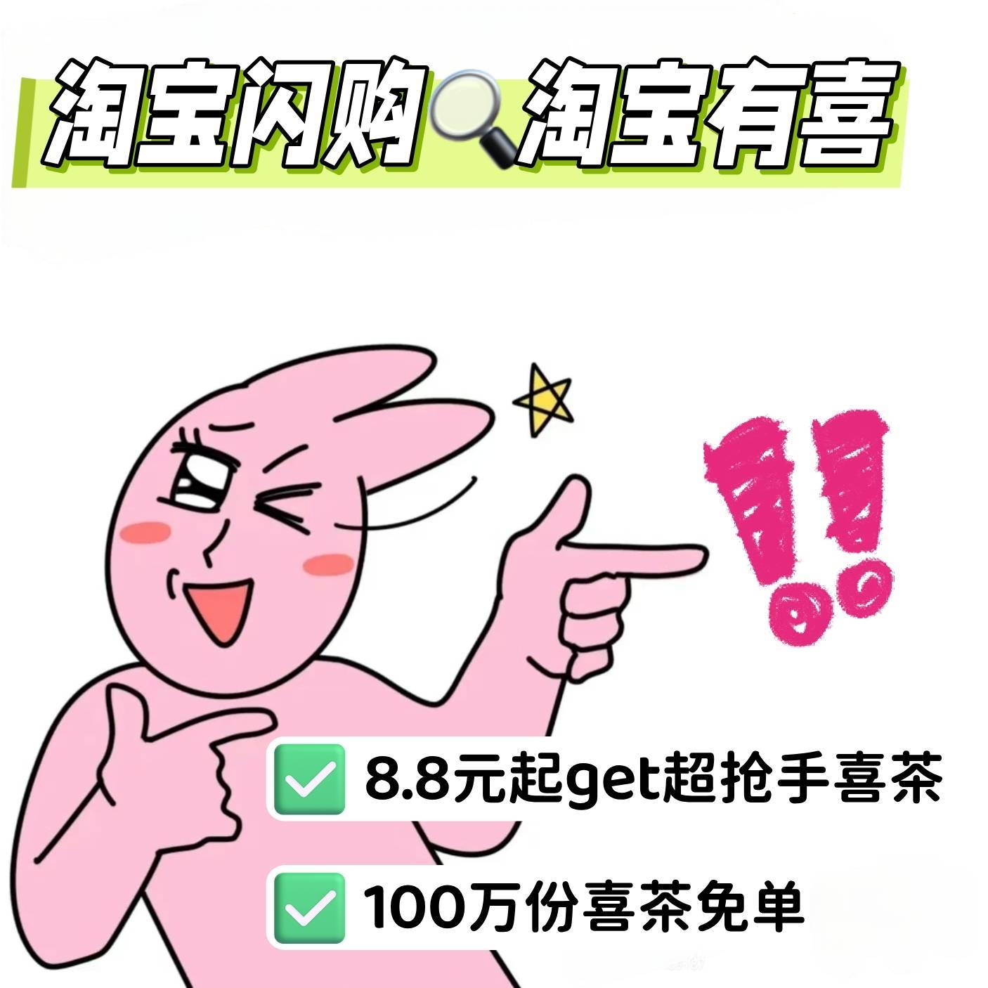 家人们家人们,淘宝闪购喜事的喜气还在持续派送中淘宝闪购有喜了!别说我没告诉你们,现在上淘宝闪购搜淘宝有喜,依然有超抢手喜茶8.8元起!100万份喜茶免单,也在等待大家~超抢手品牌日上淘宝闪购喝喜茶上淘宝闪购抢100万份喜茶免单8.8元起喝到椰椰芒芒的快乐我知道!淘宝闪购
