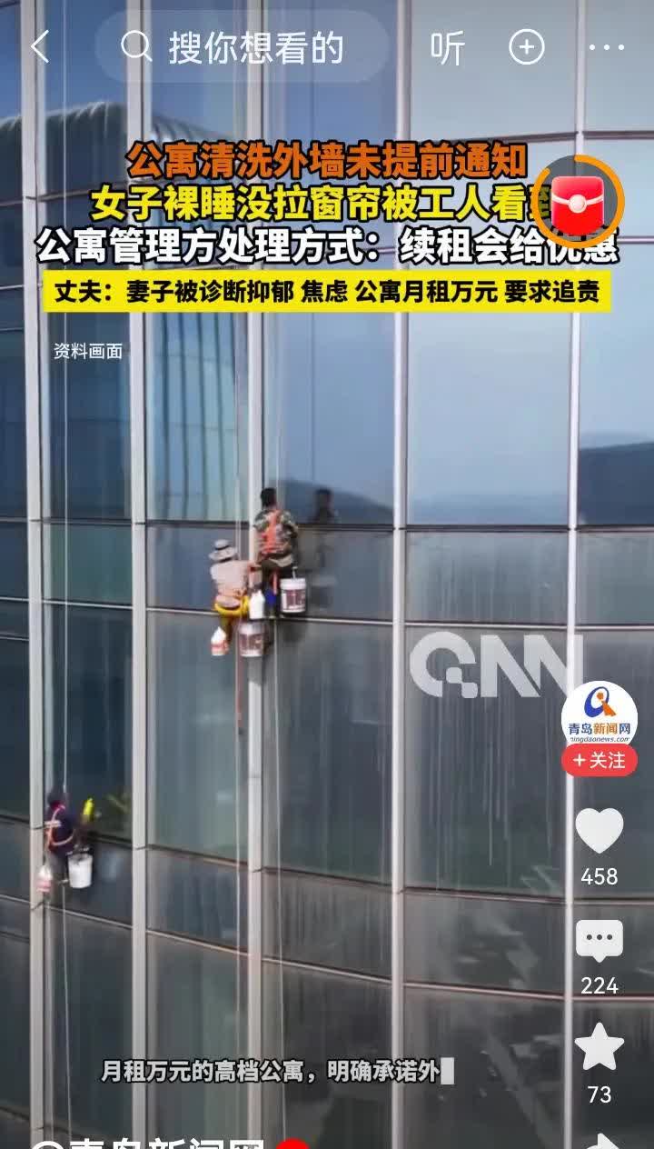 看到一条新闻说一小区清洗玻璃未事先通知,一女子裸睡,被清洗工人窥视,抑郁了。