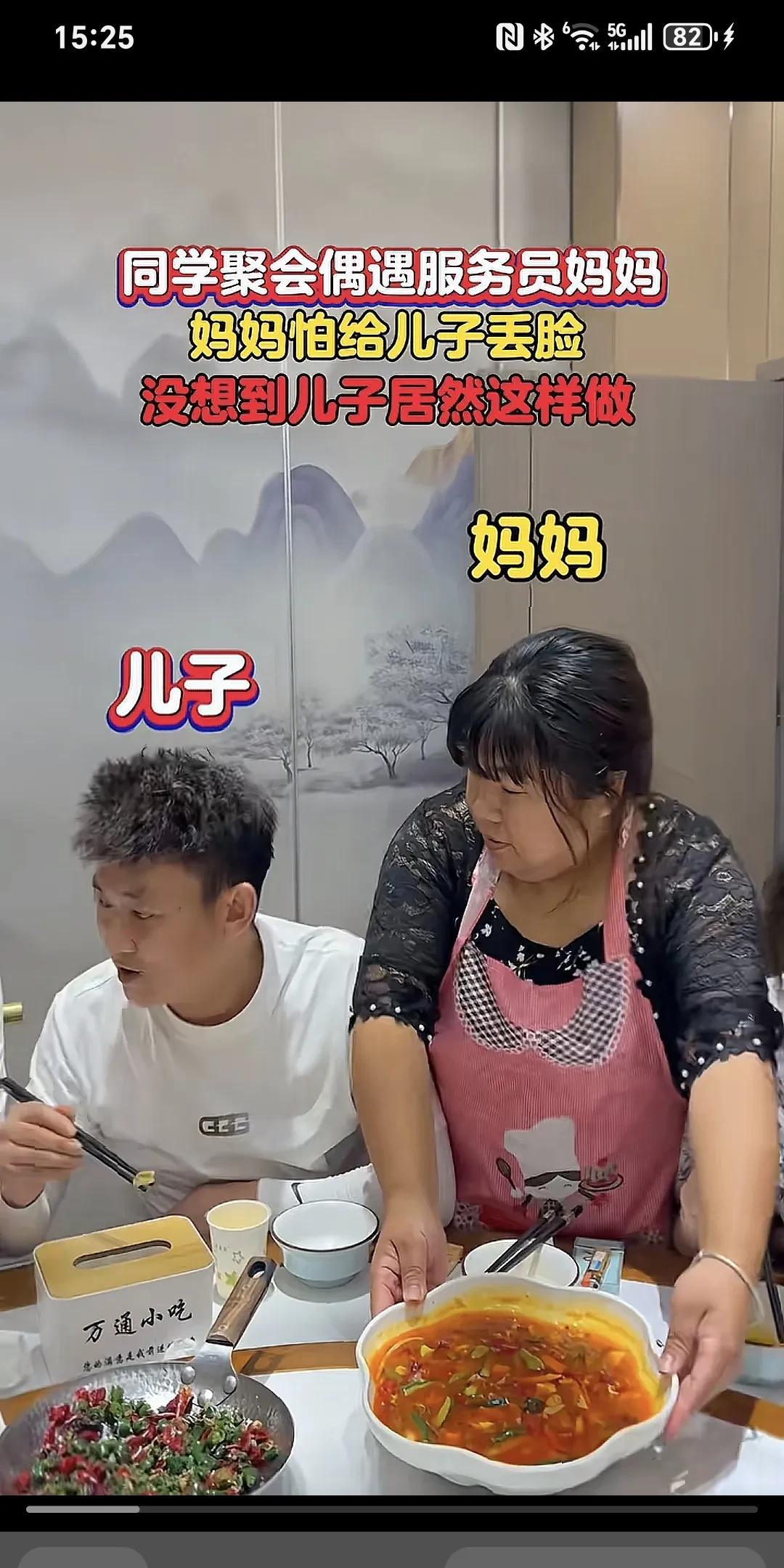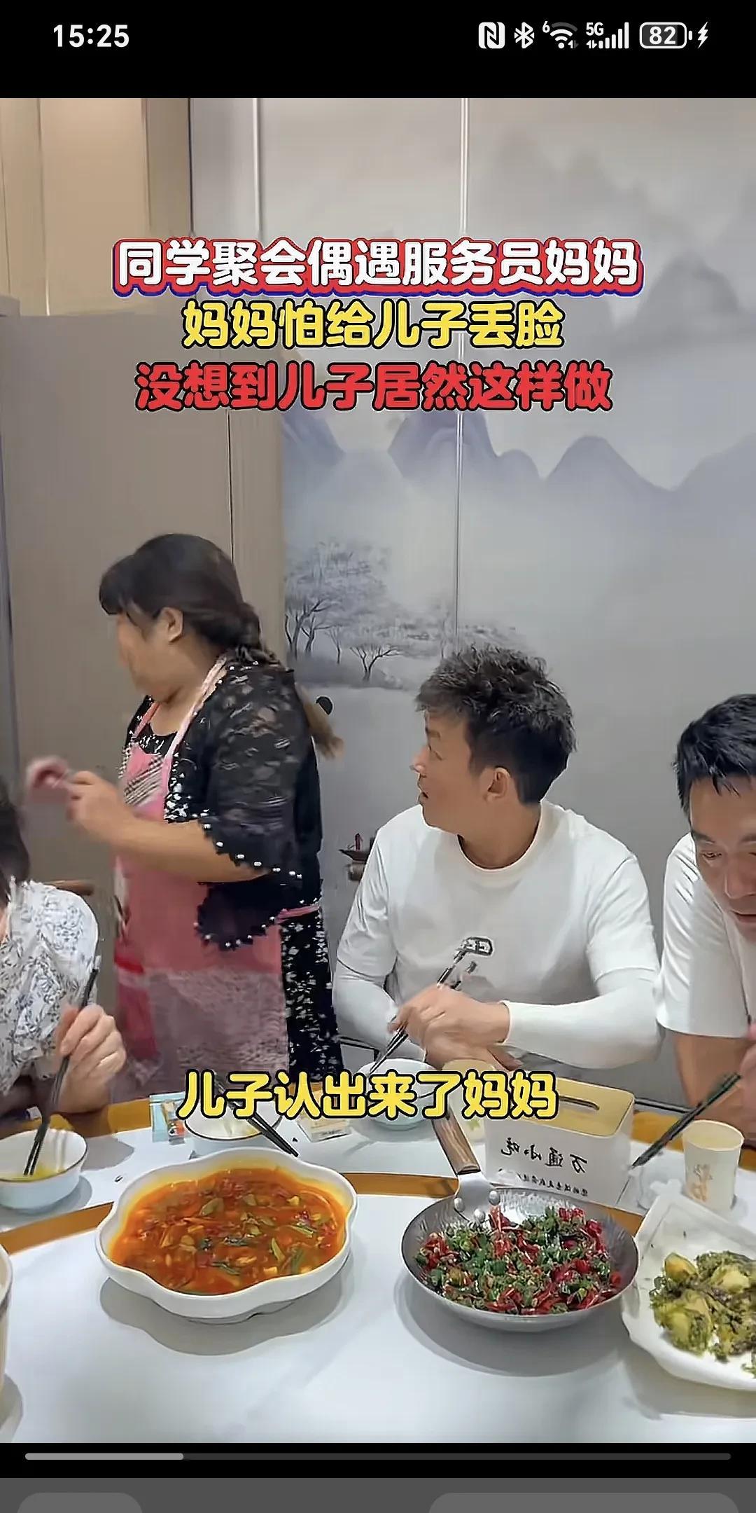 同学聚会偶遇服务员妈妈,妈妈怕给儿子丢脸,没想到儿子居然这样做~ 同学聚会偶遇服