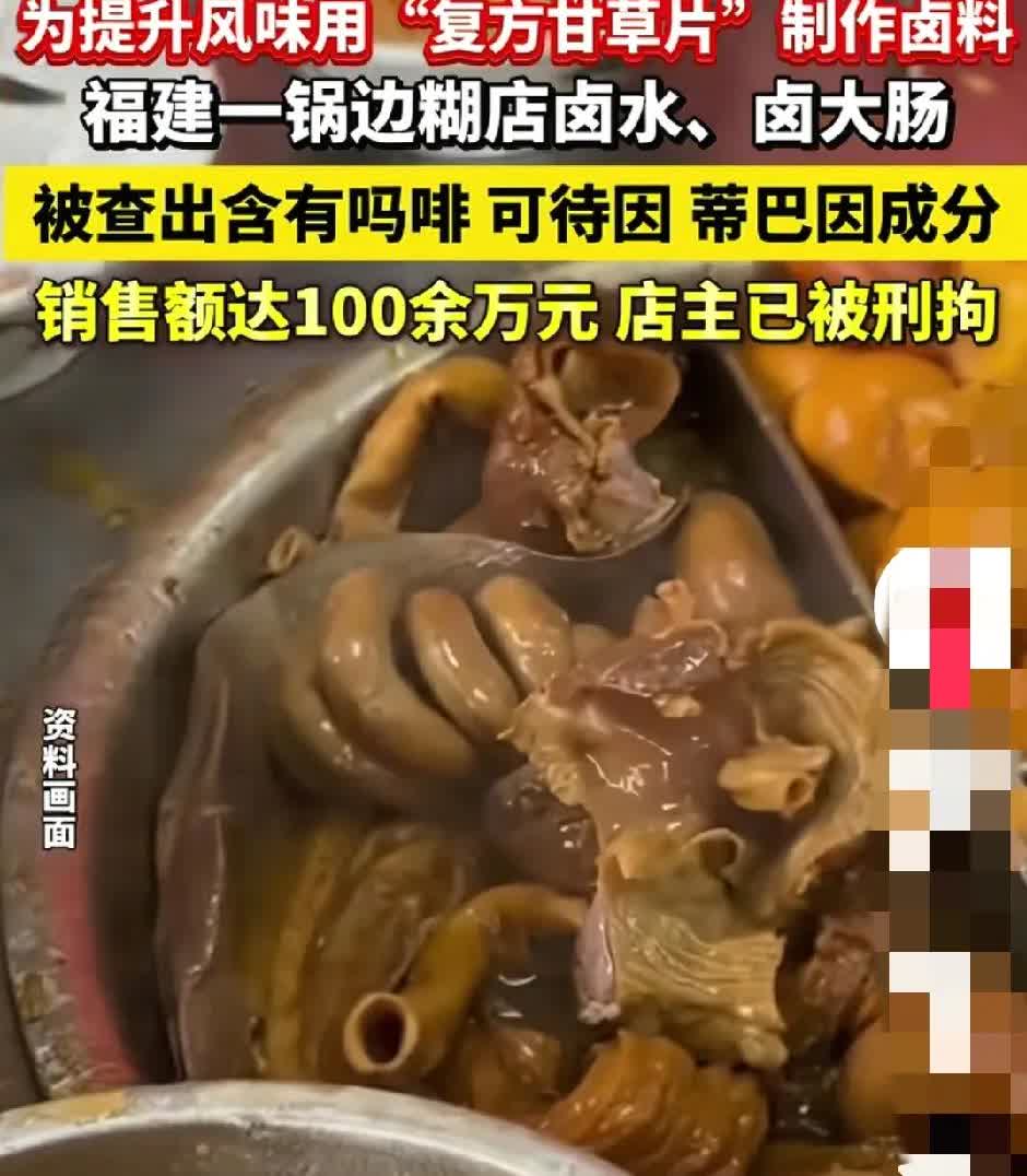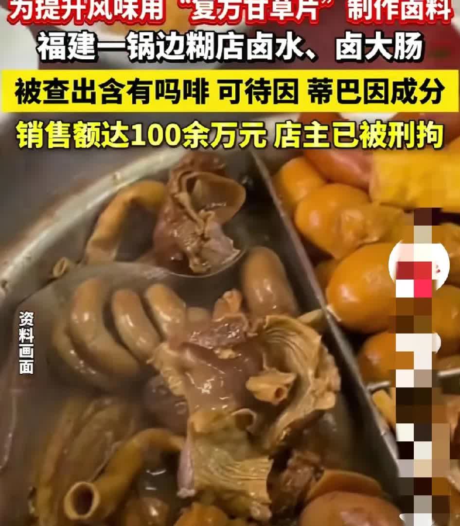 胆大包天呀! 福建漳州一商家为了做生意,他动起了歪脑筋,把“复方甘草片”磨成粉加进卤水里,这种药片里含有吗啡、可待因等成分,能让人产生依赖感,甚至上瘾,让顾客想吃还是想吃。 如今该店100多万元的卤味,该男子竟然加了400片复方甘草,放入汤料中,用来提升卤味的口味,囱菜平均60元一斤,卖了15000斤。 生意特别火爆,直到工作人员上门抽查时发现了问题,立即将案件移交给警方,只是有个顾客吃了肚子不舒服而已,在证据面前,该男子已经承认自己的行为,但自己根本不知自己不知不觉中摄入了违禁药物,已犯法了,等待他却是法律的制裁。 网友纷纷热议:复方甘草片都是管控药品,药房不允许卖,那玩意儿阿片含量很低的,直接吃,吃好久,才有上瘾的可能,且味道很重,难吃得很,怎么可能用来调味? 以后要是发现那家东西特别好,去举报一包一个准,对此,你怎么看?