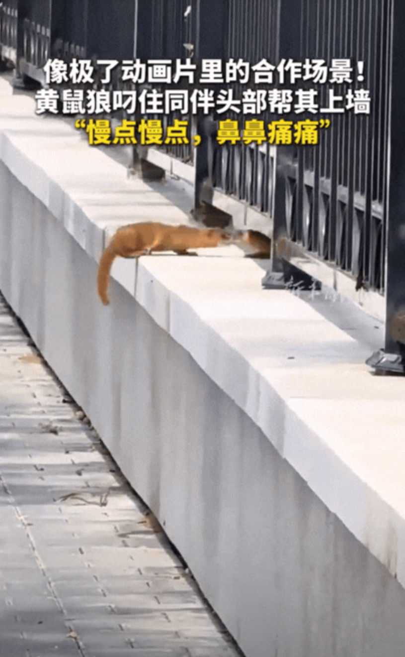 “成精了!”北京一男子出门遛弯,突然偶遇不可思议的一幕,一只黄鼠狼竟然叼住同伴的头部帮其顺利上墙,像极了动画片里的合作场景!网友:“我最想知道,第一只它是咋上去的”?