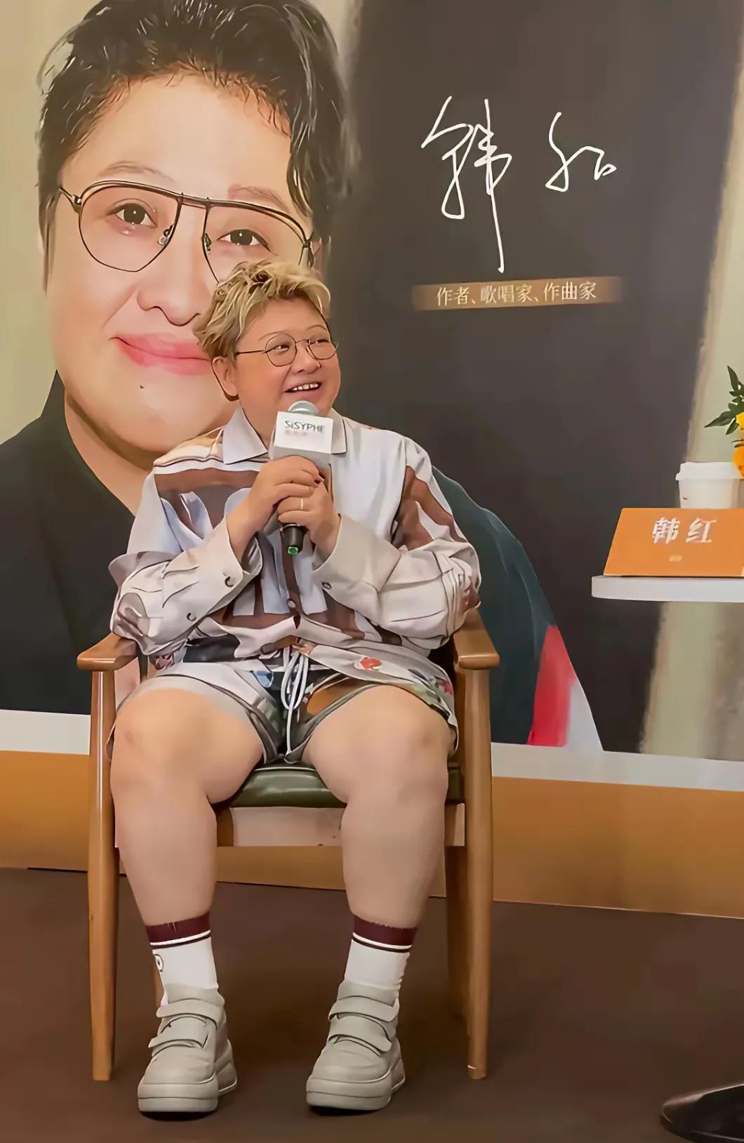 韩红因为这身打扮被某些网友吐槽了。 就是因为在公开场合穿短裤,坐姿不优雅,没有一个女明星应有的矜持。 话说韩红可能自己也没把自己当女生,就是一个大大咧咧的江湖大哥的感觉。
