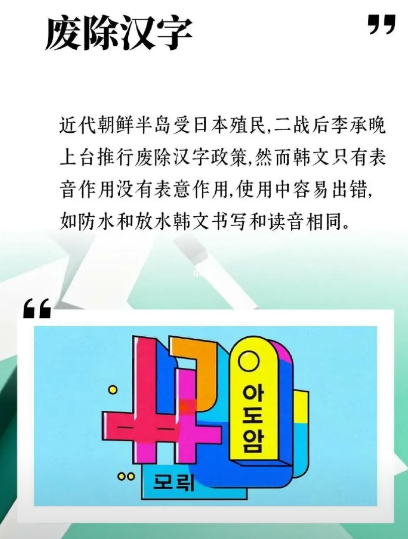 废除汉字应该是韩国最离谱的操作,历史读不了,身份证少不了,法律条文少不了,重要文件少不了,甚至去参观博物馆文物看不懂。就好像公司裁员,不小心把大动脉裁了!