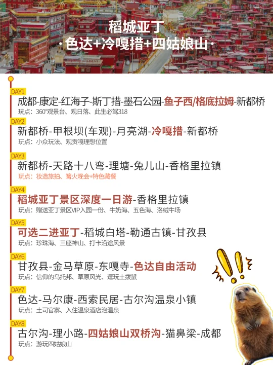 📍色达+冷嘎措+稻城亚丁+四姑娘山 8天大环线 纯玩小团