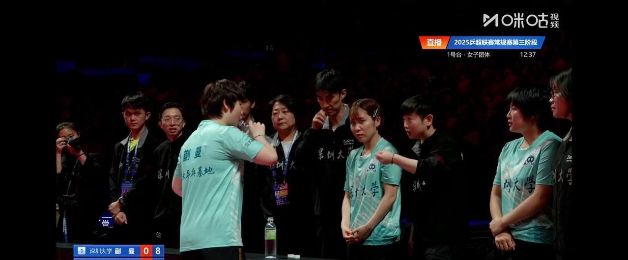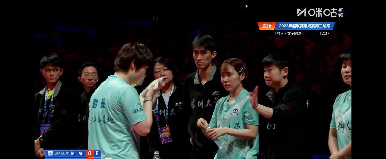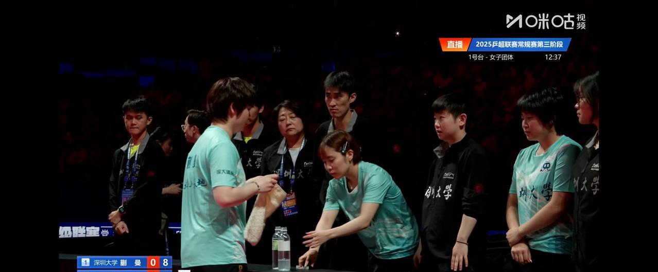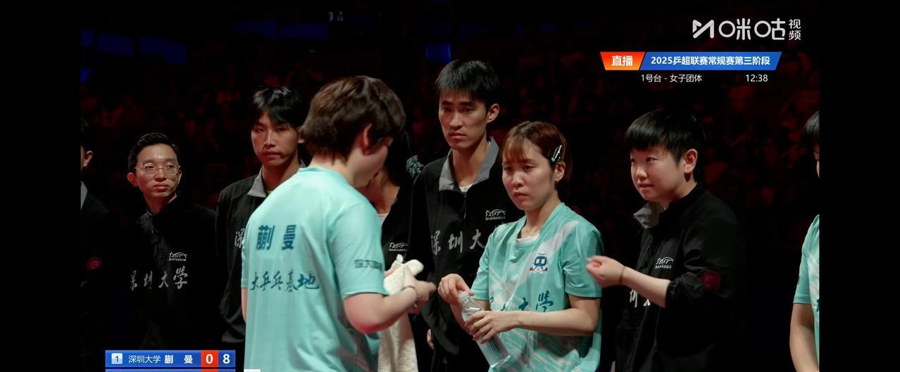 蒯曼对阵申裕斌时赛场上的一幕。 蒯曼0:1落后,第二局8:9落后,申裕斌叫了暂停。 蒯曼回到场边,莎莎和教练在指导蒯曼。 平野美宇站在旁边,见自己无事可做,便主动帮蒯曼把水瓶的盖子拧好。 #记录我的2025#