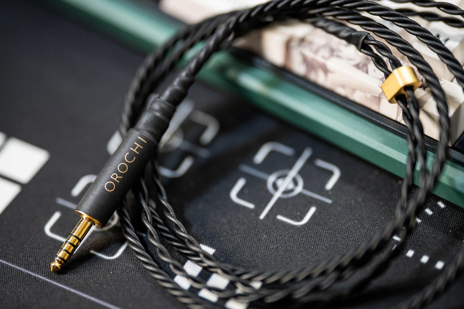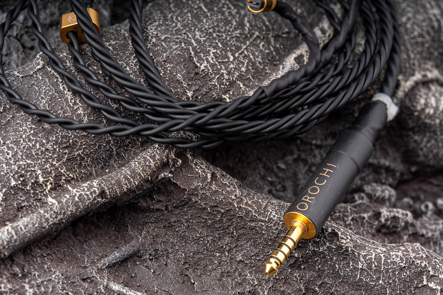 大蛇的外形风格更接近自家长期的招牌“YATONO”系列,线体是深色的,接插件的部分采用了一些金色的元素来搭配,不过Brise的作风是在插头插针的部分就已经开始为声音的部分做深度的考量,包括黑色的胶皮从选材到设计上也有他们自己的想法在里面,只是资料中并没有体现这一点。你所能选购的像MMCX、2PIN、A2DC和PentaconnEar的插针,均采用无氧铜OFC制作成外壳,而4.4插头则由Pentaconn(Nippon Dics)根据特定规格订制。不过比起白银八芯的那个粗细和编织方式,其实大蛇在佩戴方面已经是比较接近正常线材的一根了,尤其是在接近耳挂处的线材重量和软硬度都较为适中,可能稍影响体验的主要就是这个偏大的插头和比较厚重的线材末端部分。