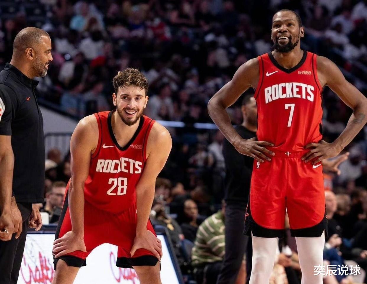 而在杜兰特得分达到30分以上时,火箭队的战绩为8胜6负,他一次又一次地用自己的进攻拯救了火箭队,但是火箭队是否过于依赖他了呢?我们来看看The Athletic的记者劳-默里是这么说的。这位记者在报道中称:“火箭队不再被视为夺冠热门球队,他们过于依赖老将杜兰特。但杜兰特对火箭队来说确实是一个巨大的提升,当这支球队的阵容中没有他的时候就会显得很迷茫。"