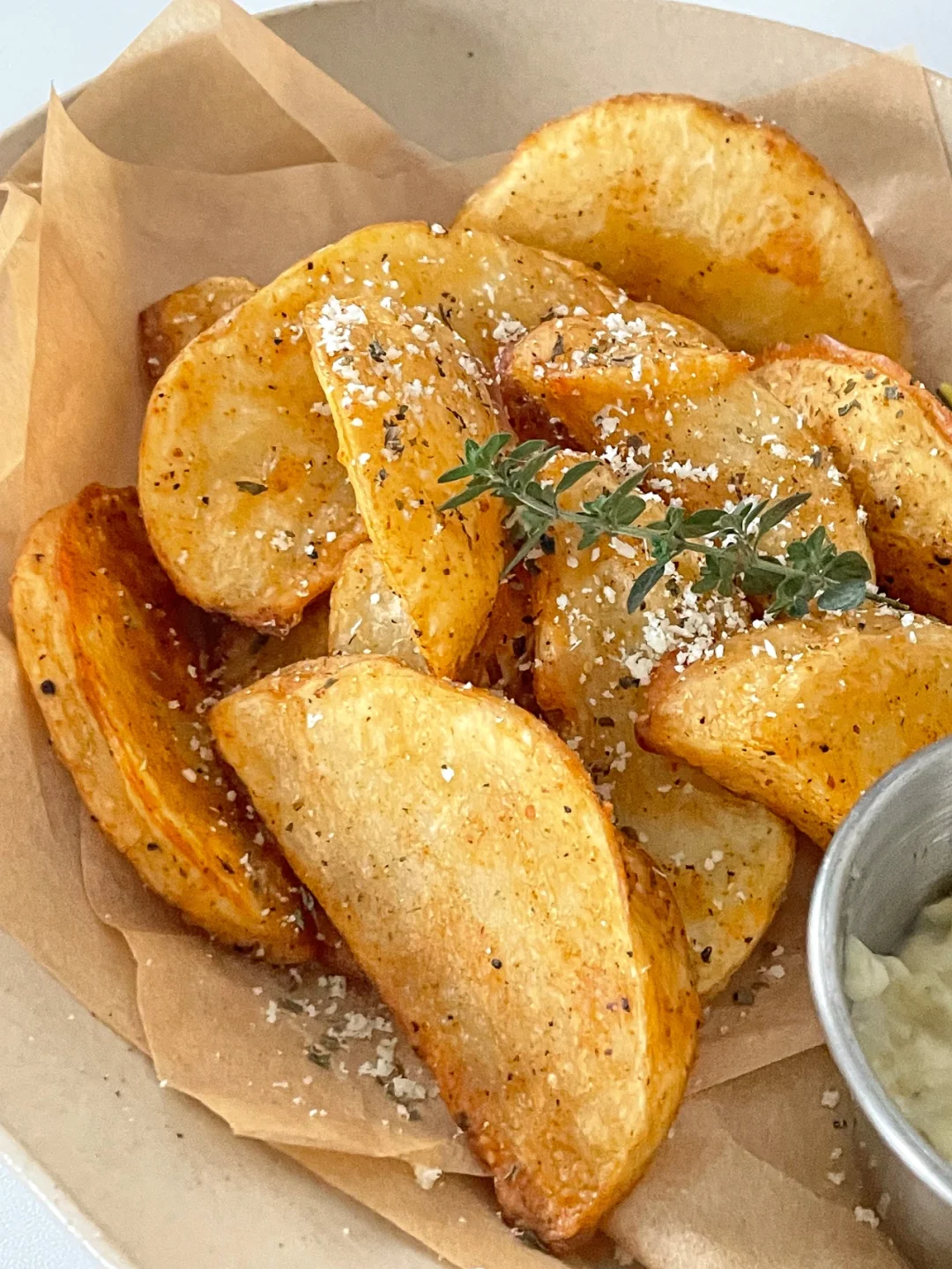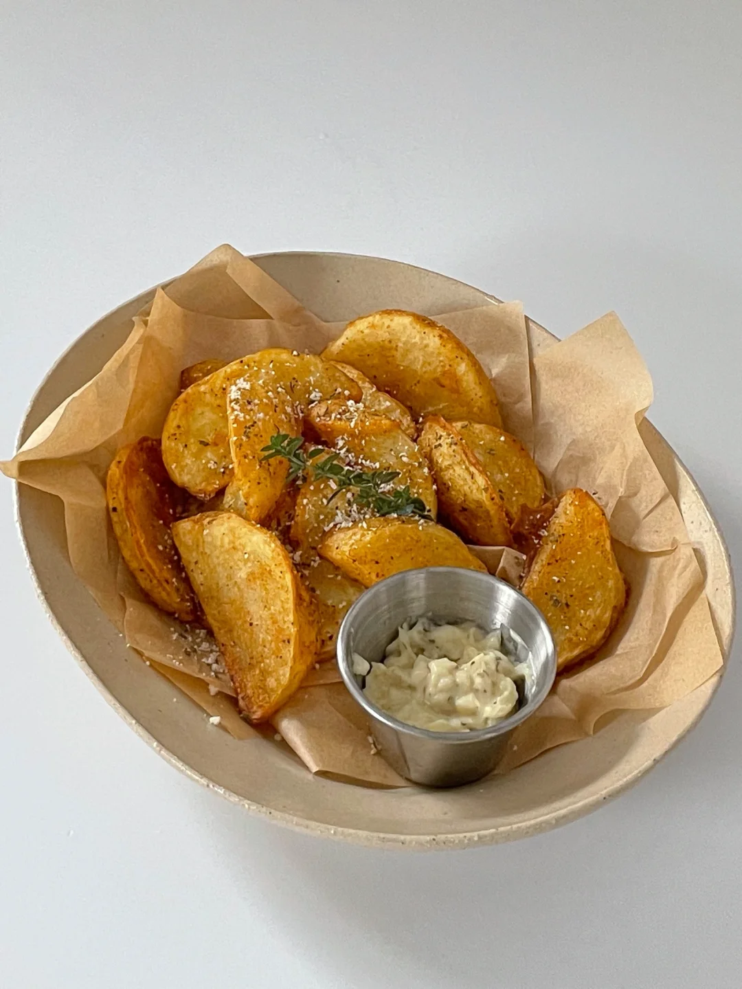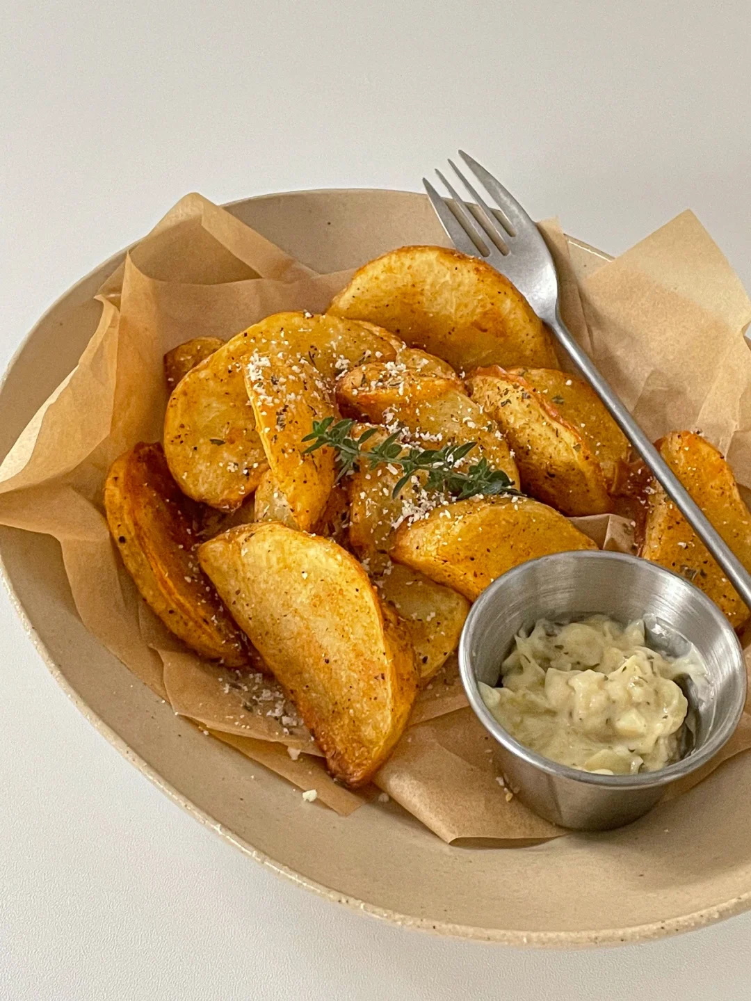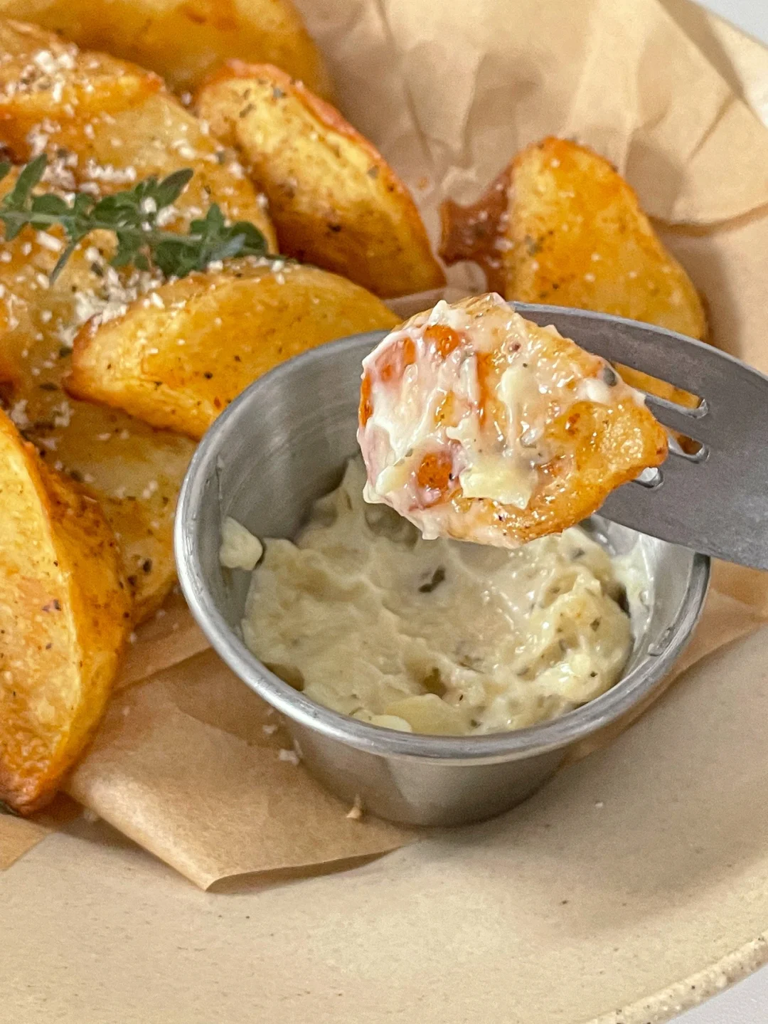 今天分享一款最近超火🔥的蒜香薯角 烤熟的大蒜混合着美乃滋 在撒上欧芹碎 简直完美!