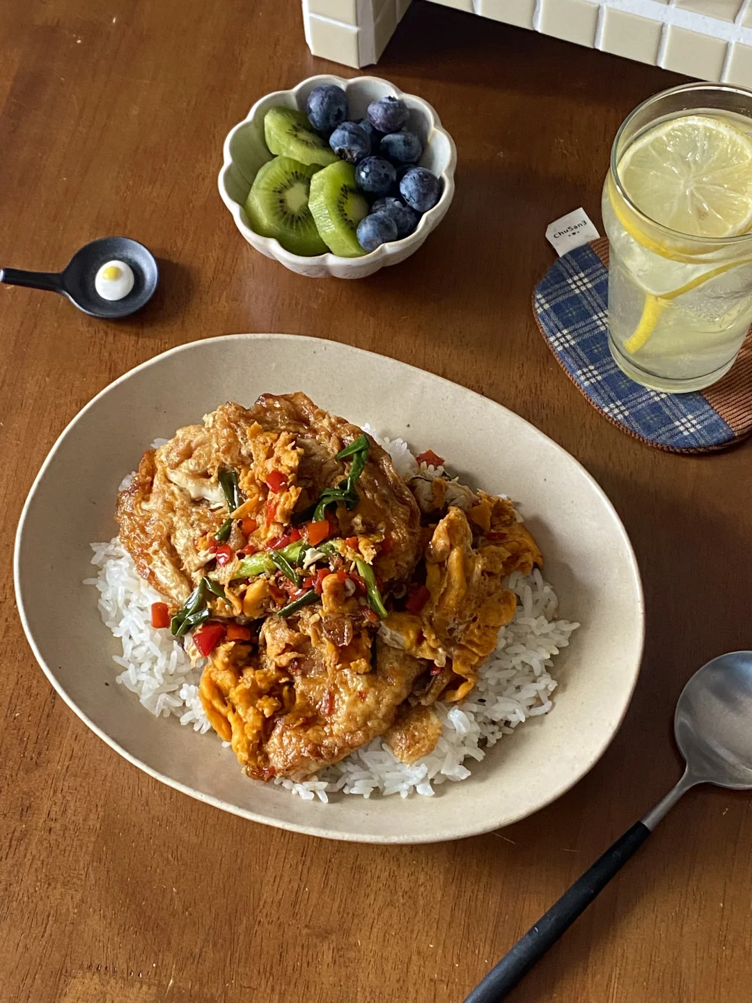 一人食午餐|超下饭的酸辣油爆醋炒蛋盖饭🥄