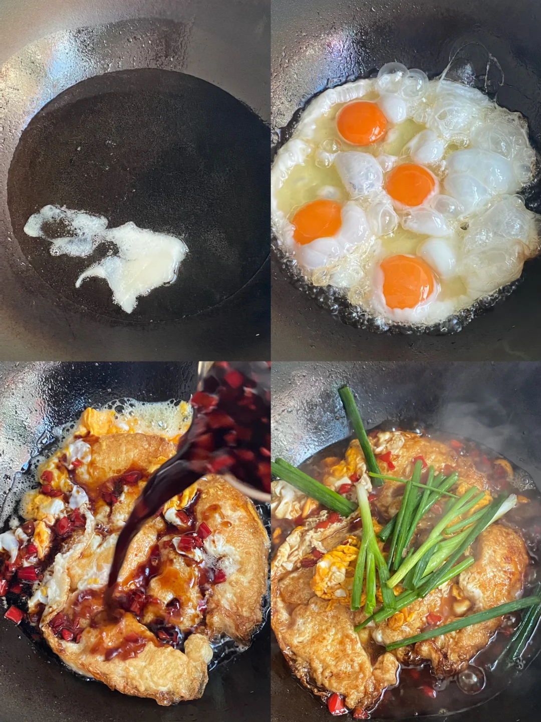 原来酸辣的菜这么开胃下饭啊🥄 光是这道菜就能配一锅饭! - 油爆醋炒蛋盖饭📒 ▪料汁:两勺生抽|两勺陈醋|一勺白糖| ▪半勺蚝油|一勺剁椒|两勺水搅匀| - ▪锅中加入植物油和一大勺猪油烧热 ▪放入鸡蛋煎至定型再翻面 ▪倒入调好的料汁煮开 ▪放入葱段关火 - 微酸微辣真的很开胃! 不知道是不是到了爱吃酸还挑剔的年纪,觉得紫林山西老陈醋好香好开胃,还比普通陈醋营养得多,平时吃卤味的时候都会用它调个蘸料来搭配一下!