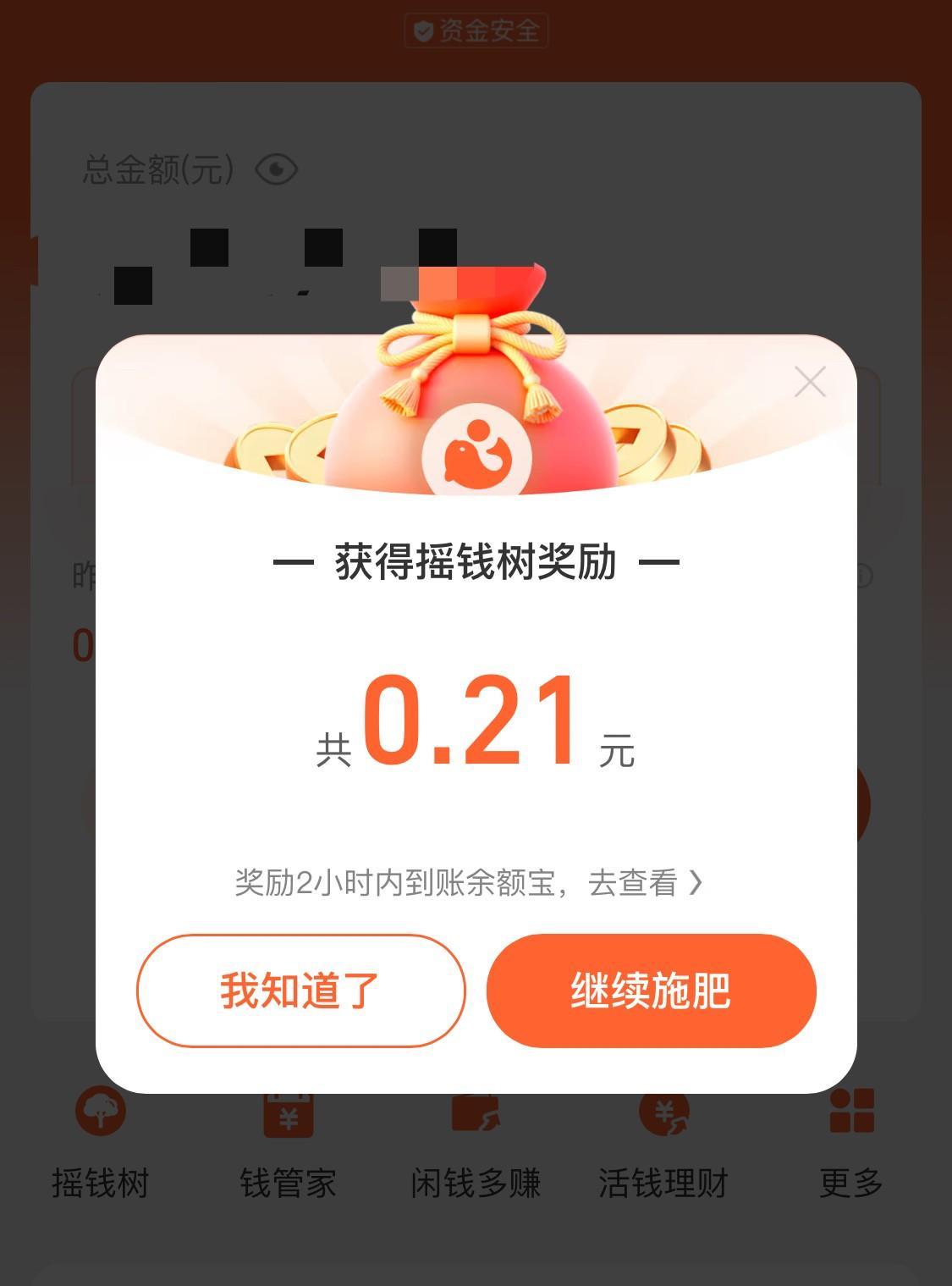俗话说的好~要想有钱赚,首先你必须忙起来[星星眼] 这几天忙的晕头转向的,但是“赚钱”这个核心理念,始终没有忘! 一会儿“领黄金票”,一会儿“开金珠”,一会儿喂小鱼,一会儿喂小鸡,但是,重头戏依然是支付宝“芭芭农场”种发财树[烟花] 发财树昨日收益已到账,0.21元,和自己的余额宝昨日收益PK,完胜! 今天继续给发财树施肥,因为要兼顾“淘宝”那边的发财树,今天可能要比昨天施肥次数少一些! 完成页面各种可以完成的任务,午后三点,支付宝“芭芭农场”的发财树施肥63次,期待明天收益能上一个小台阶[招财进宝][招财进宝][招财进宝] 有所热爱,有所期待! 喜欢赚零花钱的小伙伴们,大家种的发财树收益情况怎么样呢? #晒图笔记大赛#