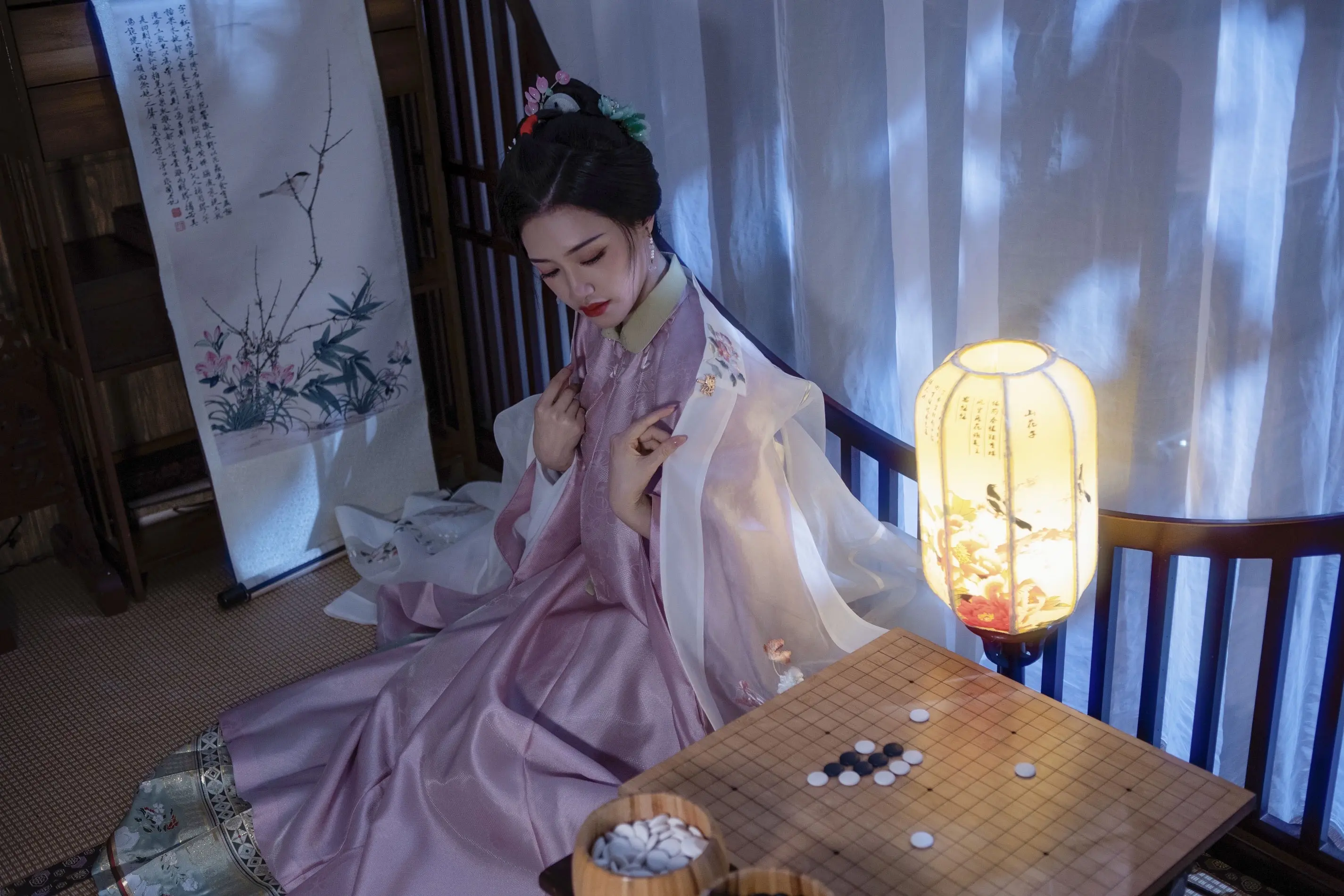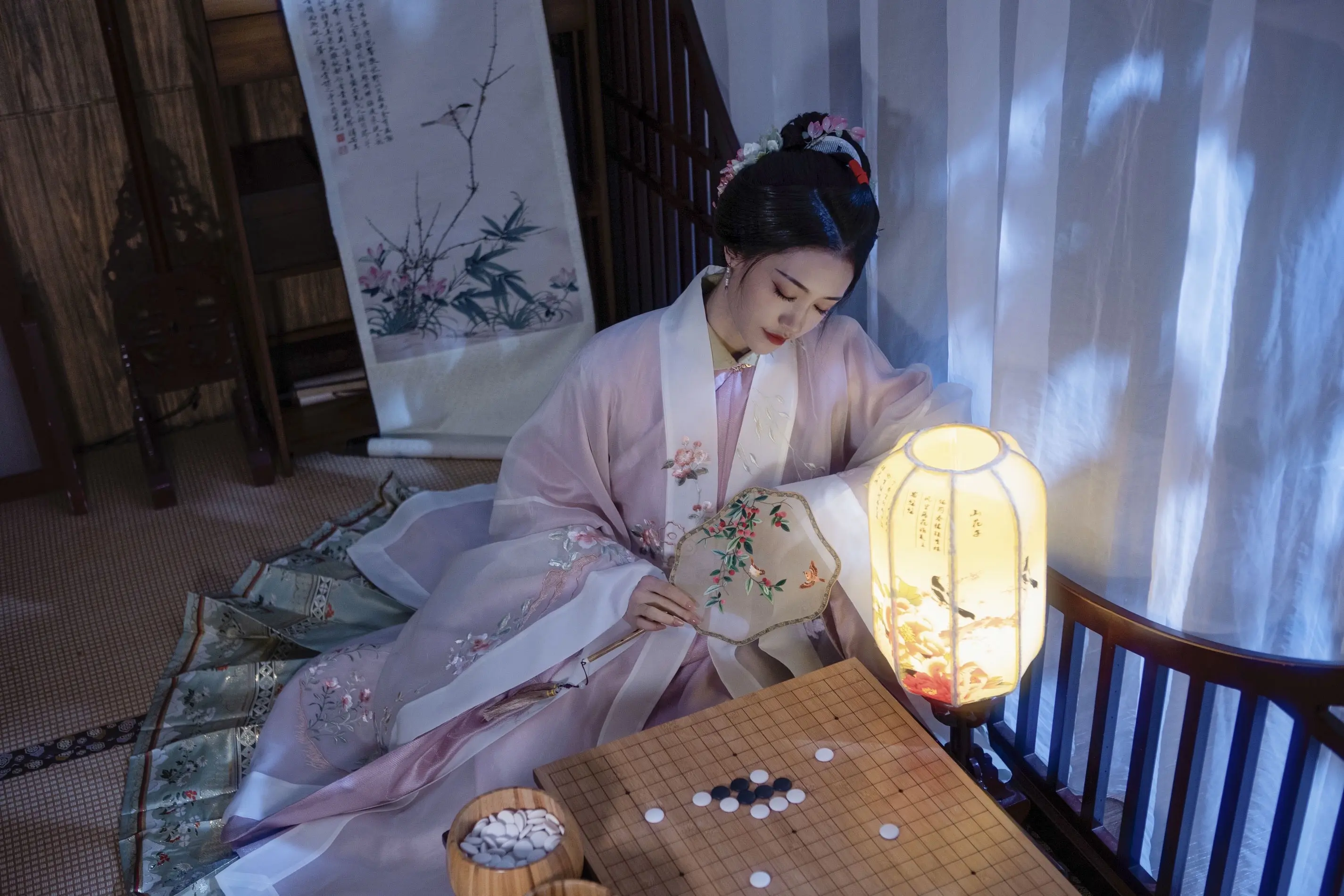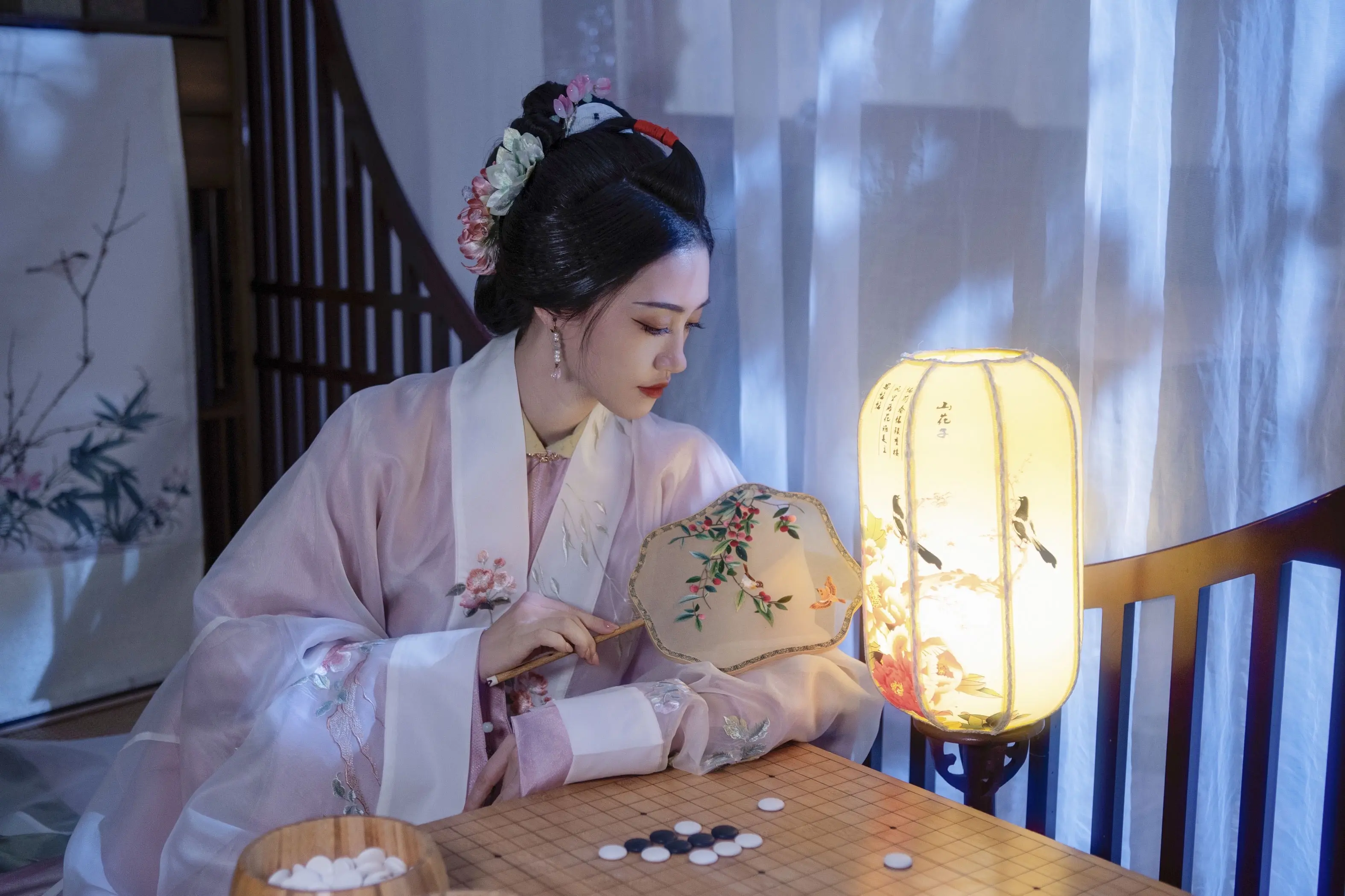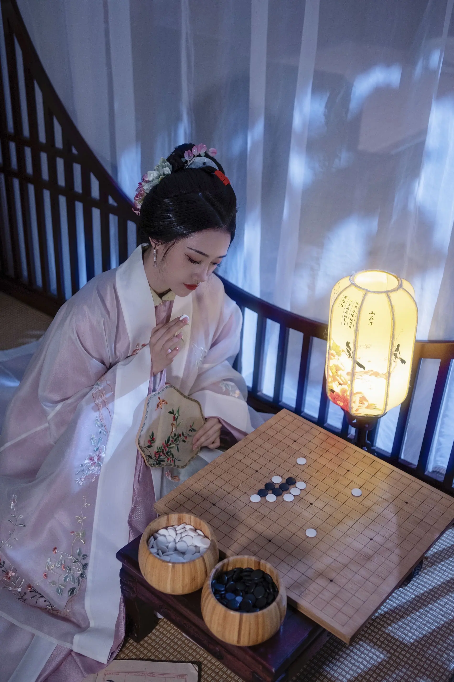 闲敲棋子落灯花,静赏幽芳意自遐。