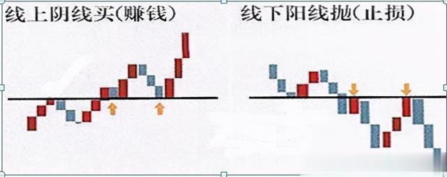 口诀四:线上阴线买,买错也要买;线下阳线卖,卖错也要卖。
