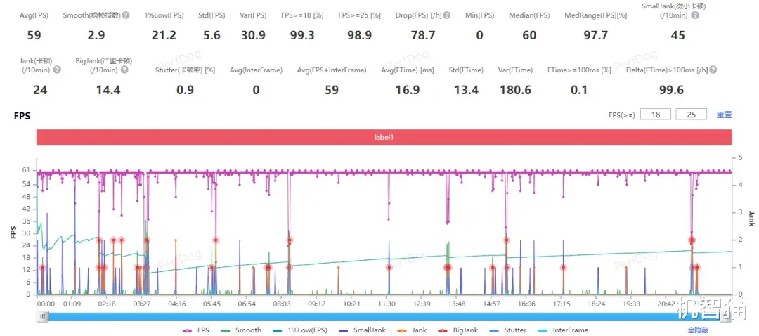 在很吃CPU性能的《绝区零》中,同样最高画质+60帧,红魔10 PRO+跑图稳定60帧,功耗3.7W,帧数曲率毫不意外,几乎是一条直线。长时间关卡战斗,即便算入加载画面,也能保持59帧,功耗3.9W。