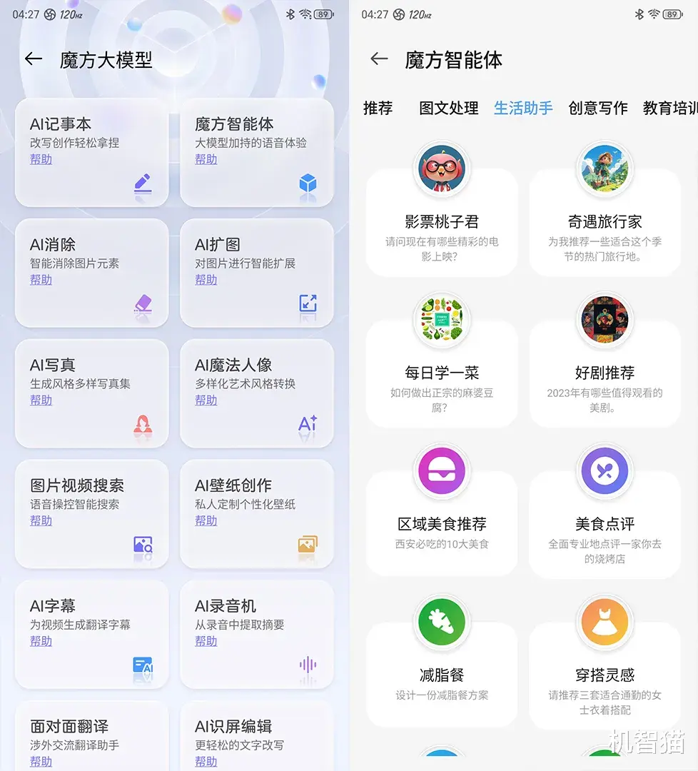 我觉得这里最有意思的是魔方智能体,你在这里找到更多有意思的AI功能,比如AI消除、生成藏头诗、菜谱查询、写影评、论文搜索等等,红魔10 PRO+应该是最近几款新机中,预置AI功能最多的。
