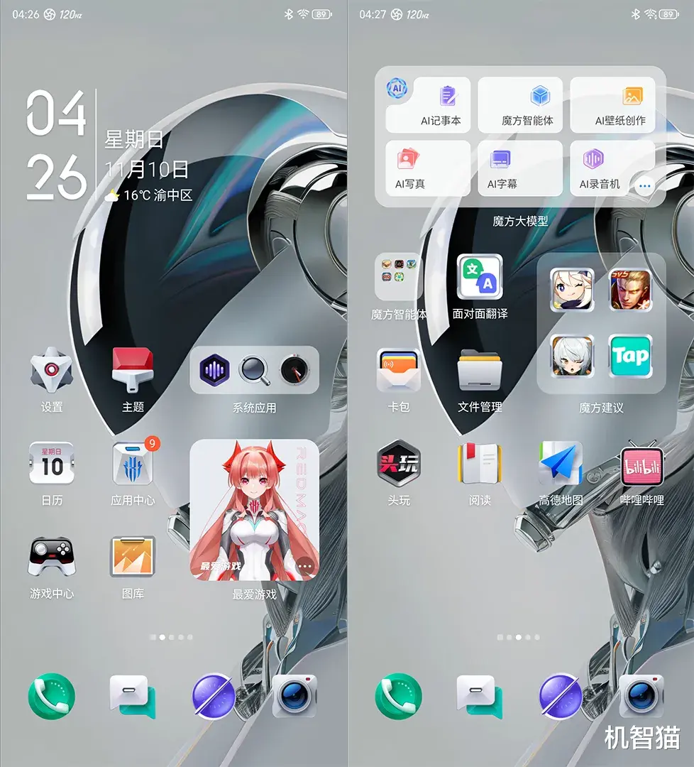 红魔10 PRO+在AI上也有涉足,它好像生怕你不知道有哪些功能可以用。于是在默认桌面上加了一个十分显眼的AI工具箱,基本目前你能想到的AI功能,都能在这找到一样或类似的。