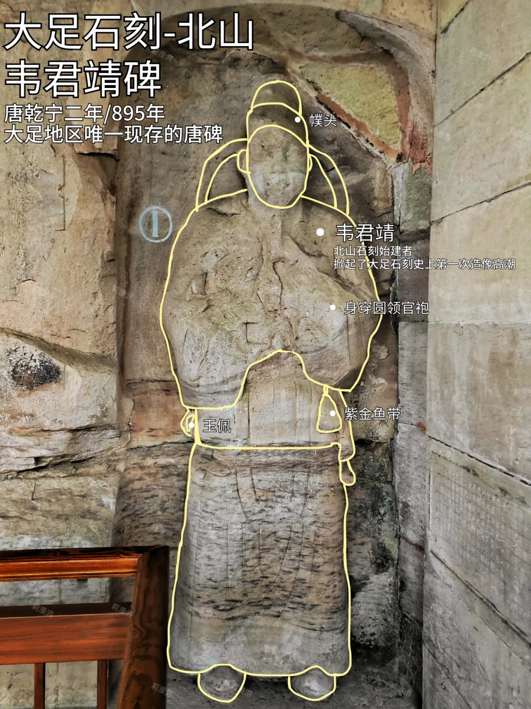 这里自晚唐景福元年(892年)开凿,历经五代、两宋、明清,多为摩崖造像,有少量石窟造像,始建人韦君靖
