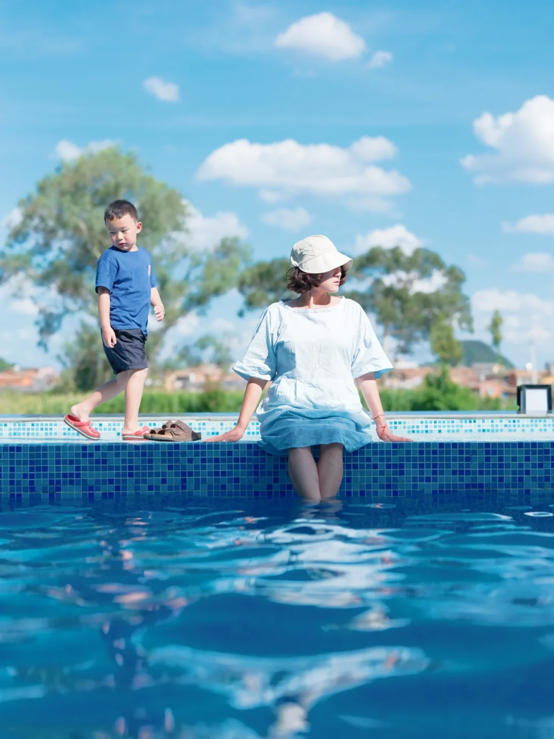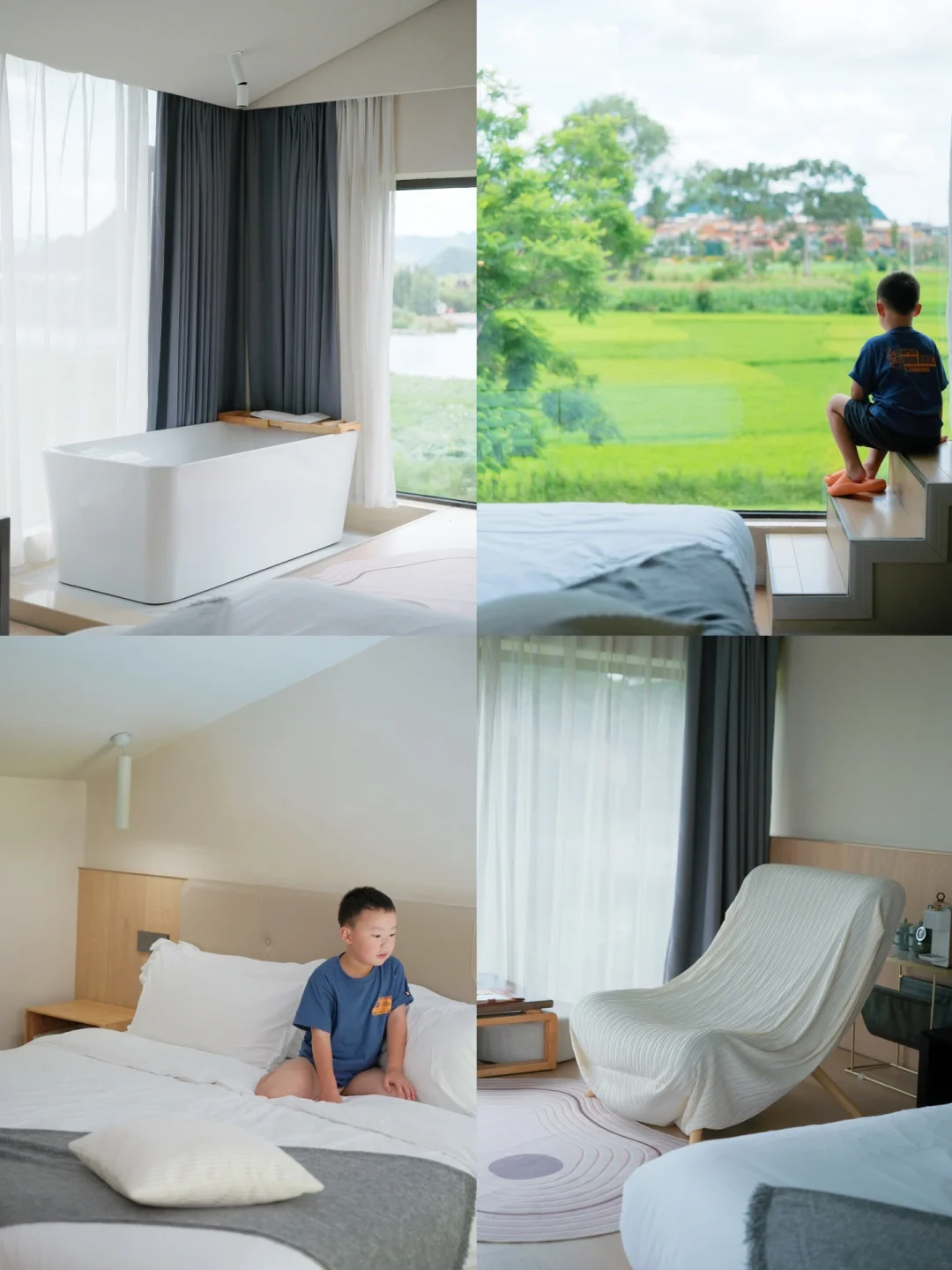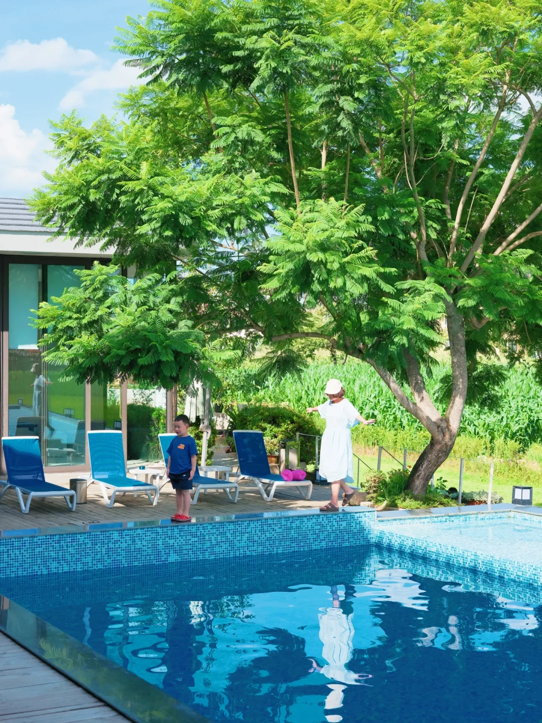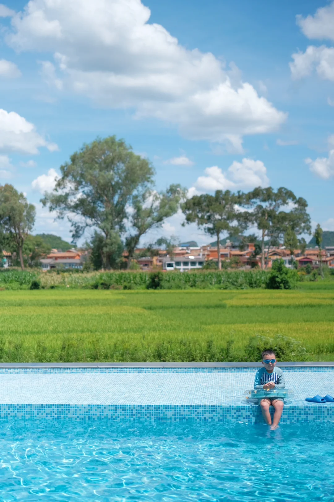 🏖️后院还有一个泳池,孩子在水里和小朋友们游泳玩水,我和花生爹在泳池旁看着远处的美景喝着下午茶,享受这舒适的周末度假时光😎 相当的洗眼睛👁️。当然你也可以坐在稻田边看书发呆或者在公区喝杯咖啡☕️和朋友下盘棋♟
