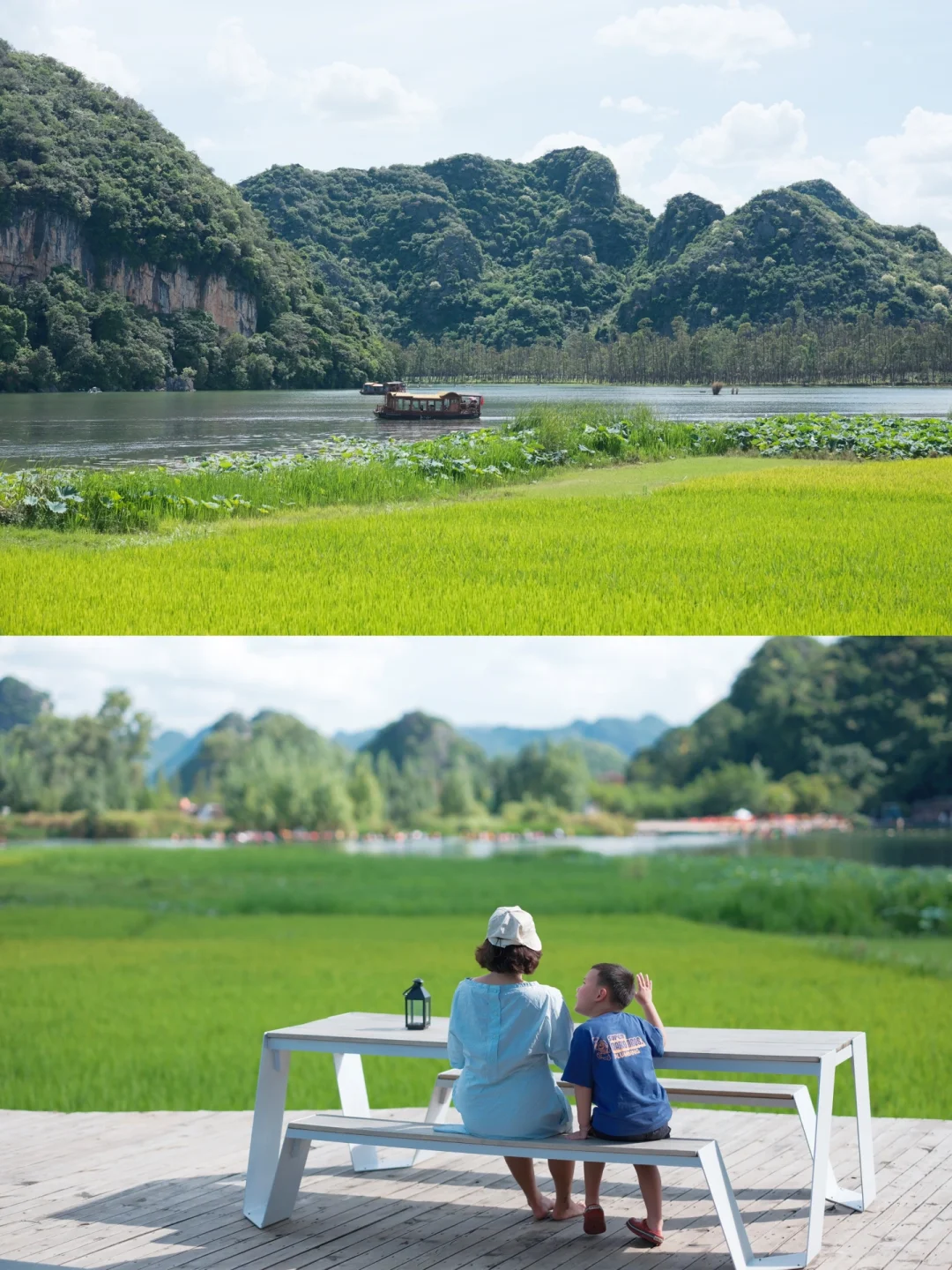 昆明昆明!高铁站出发1.5h抵达,反复一秒闯入山水风光动画大片的小院子,真的太美啦✌️这里将眼前的风景和院子结合的如此完美,眼前的风景令人震撼~ 往里走屋外的稻田此时正值绿油油时节,远处依山傍水 ,👀着远处小船从河面上划过像极了阳朔啊!
