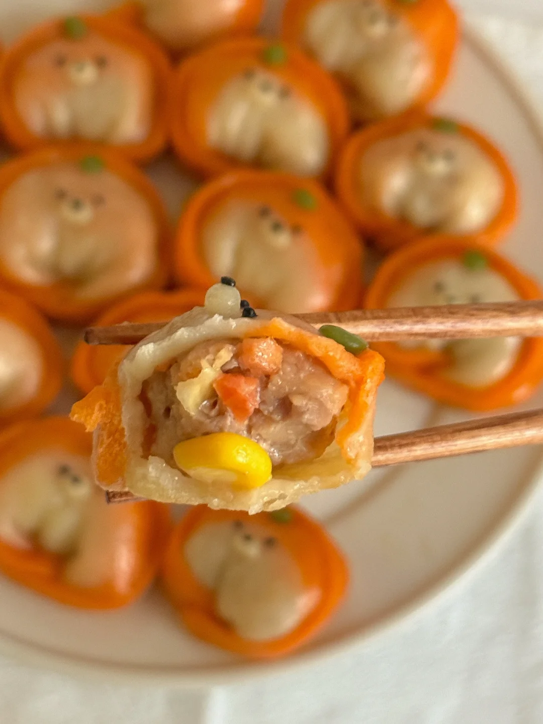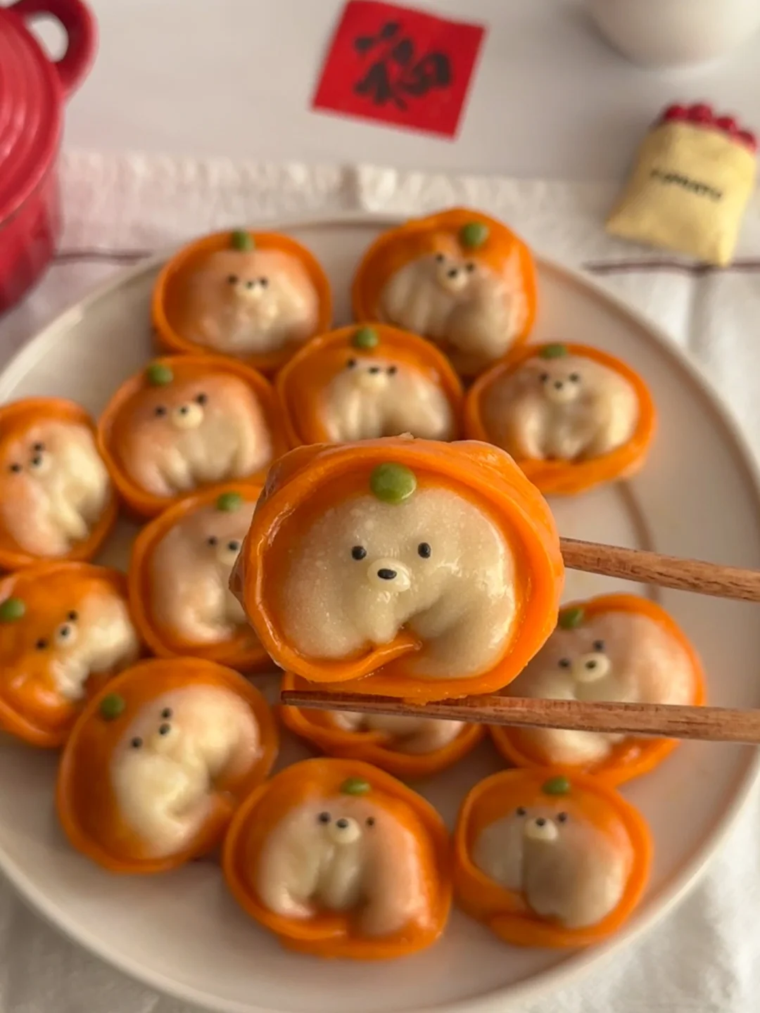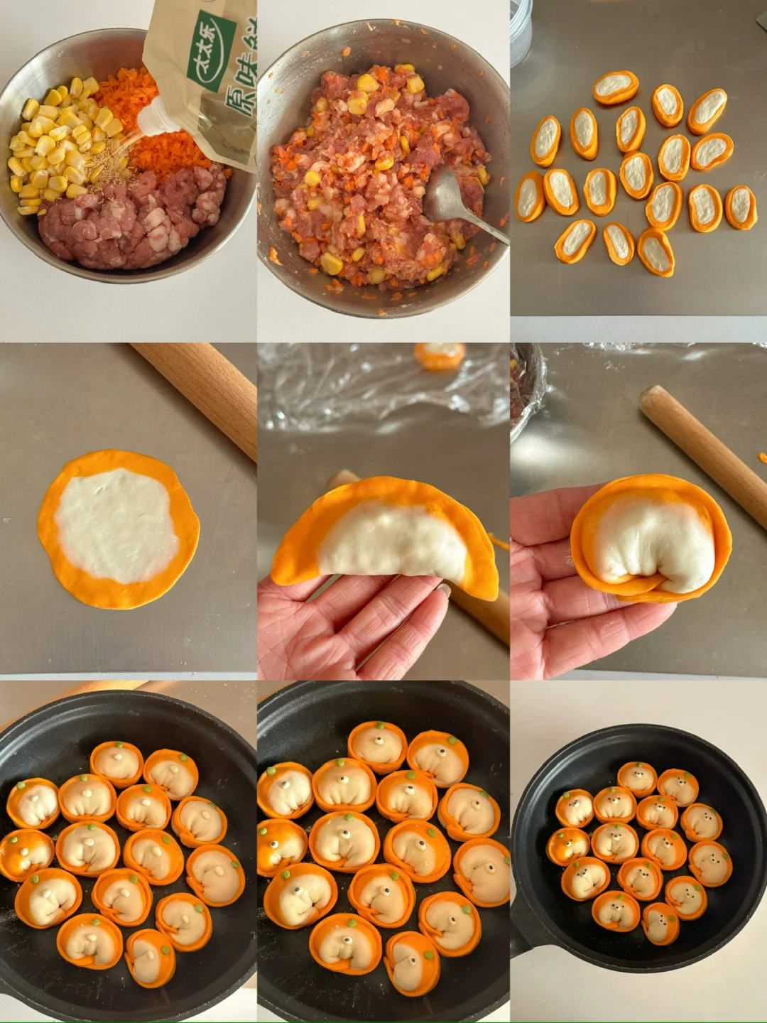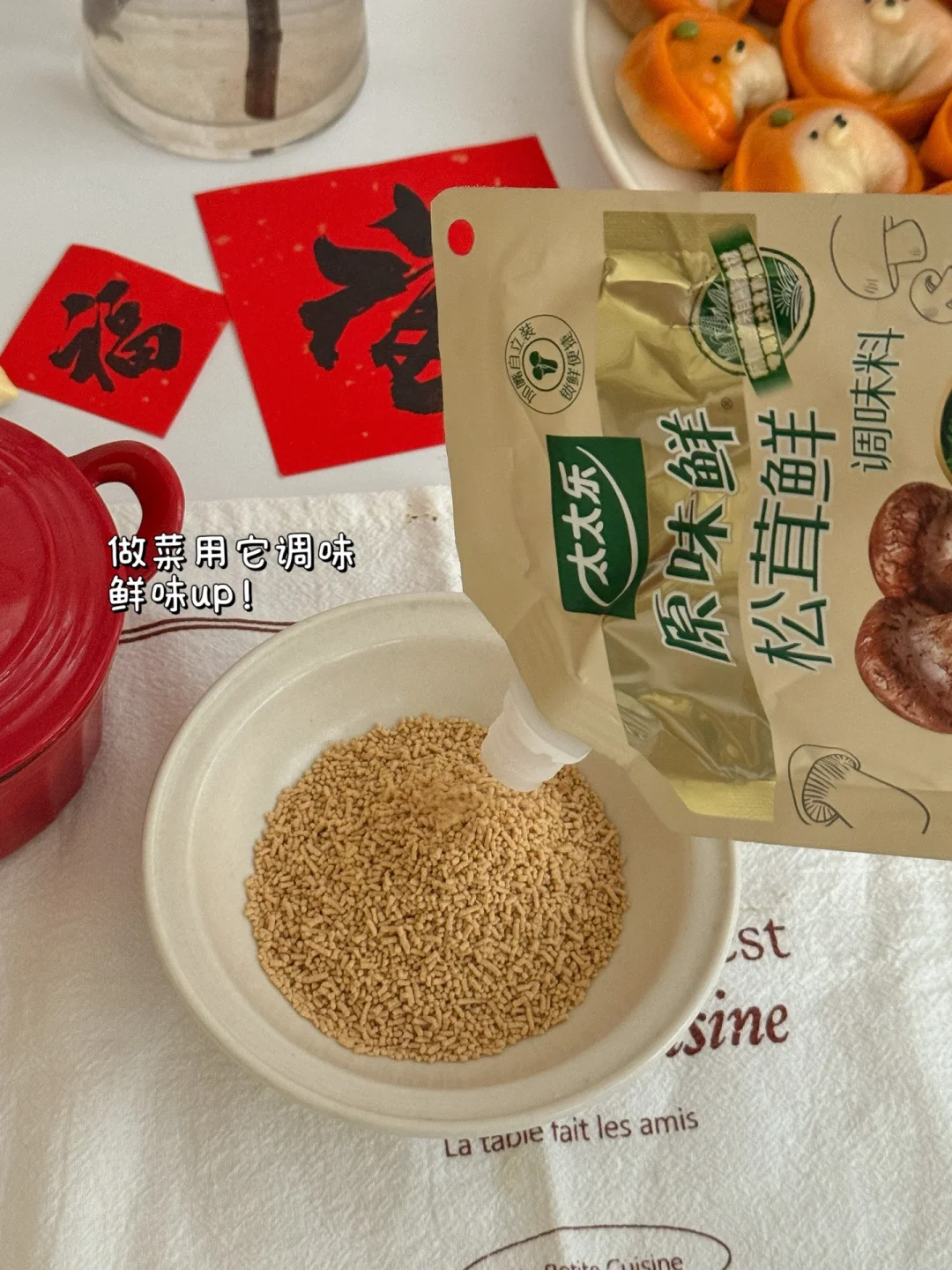 春节马上就要到啦 返乡回家过年的心情也按耐不住😄 老家小朋友多,所以我专门花心思准备了一款小朋友能吃的蛇年年夜饭-胡萝卜玉米饺 不仅可爱美味,而且有菜有肉,充满了营养小心思! 学会这款可爱又美味的饺子绝对会是让小朋友心服口服的年夜饭大招哦~💕 - 材料 饺子馅:猪肉末、胡萝卜碎、玉米粒、太太乐原味鲜松茸鲜、生抽、白糖、玉米淀粉、清水、油,混合均匀搅拌上劲(松茸鲜含盐,无需额外添加盐 白色面团:120g面粉、60g清水 橘色面团:120g面粉、60g清水、5g黄金芝士粉 - 步骤: 1⃣白色面团:120g面粉+60g清水混合均匀,揉成无干粉面团,包上保鲜膜醒发20分钟,切一小块加少许竹炭粉,一小块加抹茶粉、再保留一小块原色面团 2⃣橘色面团:120g面团+5g黄金芝士粉+60g清水混合均匀,揉成无干粉面团,包上保鲜膜醒发20分钟 3⃣面团醒发后稍稍一揉就很光滑,白色面团搓成长条,橘色面团擀薄后包入白色面团封口捏紧,切成小剂子后擀成饺子皮 4⃣饺子皮包入肉馅,包成元宝的形状,包好的饺子用提前留好的面团做造型 5⃣ 热锅冷油将饺子煎到底部金黄,加入淀粉水没过饺子,盖上盖子焖到水分蒸发 ,煎出雪花底就可以啦 - 因为是给小朋友准备的,所以调馅我特别添加了鲜味小心思,用了小朋友很喜欢的太太乐原味鲜松茸鲜~过年了当然要给他们吃最喜欢的味道啦! 这款松茸鲜里面含有真松茸真的炒鸡香,而且选用的都是云南本地野生松茸,还搭配了多种菌菇提鲜,开袋就能闻到浓浓菌香!吃在嘴里回味会有很鲜的松茸菌香,鲜味也是很自然的那种,仿佛瞬间置身云南的原始森林!平时做饭、调汤加一点就嘎嘎鲜美,这小朋友能不爱吃嘛~ . 配料表也很简洁,真正做到四大0添加,宝宝吃着轻负担~品质也有保证,都是太太乐自有工厂生产的,知名大品牌值得信赖👍!过年还在纠结给娃做啥的赶紧学起来,这款松茸鲜网上、超市都能买到,麻麻们赶紧冲冲~