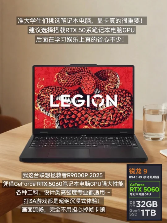 如果专业要求高、预算充足的话,我会建议各位准大学生选择RTX 50系笔记本电脑GPU![捂脸R]因为选择一台足够好用的电脑,你就知道后面就有多省心![斜眼R]现在就以我自己在用的联想拯救者R9000P 2025来说说,选对一台适合自己的电脑,到底有多爽!