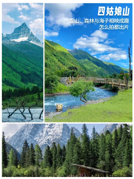 四川阿坝的 “东方阿尔卑斯”,以四座雪山为核心,分双桥沟、长坪沟、海子沟。双桥沟看雪山草甸、海子成群~