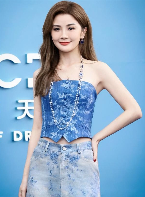阿Sa一改邻家妹妹形象,身着蓝色复古抹胸裙,与活动背景的“水元素”完美呼应,腰肢纤细如水中精灵。长期健身让她保持少女身材,但面部苹果肌浮肿与消瘦身材的违和感,也引发“过度追求瘦身”争议。尽管如此,她的状态仍被赞“冻龄奇迹”,网友调侃:“我30岁她长这样,我50岁她还这样!”