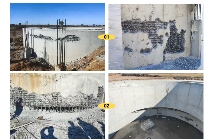 左风电基础钢筋网密度高,振捣条件差的部位,混凝土密实性差。之后,按照CT检测结果进行专业计算分析,并对风电基础薄弱部位设计加固处理方案进行加固。