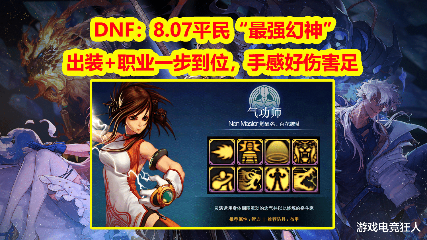 ①职业选择女气功,数据一线,手感幻神,操作简单,百分比职业上限高;
