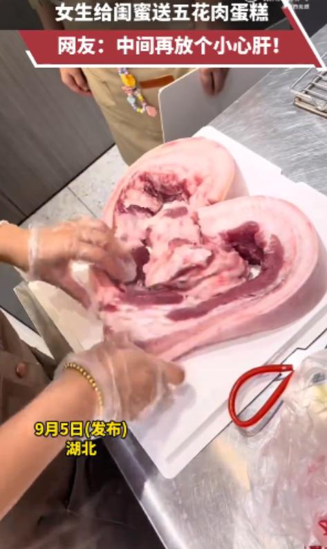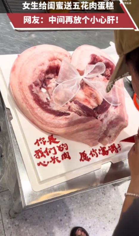 笑麻了!8月30日,湖北安陆,一女子要过生日,但她平日里不爱打扮、不喜欢买东西,唯一的爱好就是吃肉,闺蜜们投其所好,做了一个“五花肉蛋糕”送给她!还在蛋糕上贴心的留言:“你是我们的心头肉”、“愿你富得流油”。网友:真是一群损友! 当时黄女士和她的朋友们聚在一起,计划着要给一个特别的朋友庆祝生日,她们的这位闺蜜是个与众不同的姑娘,她平日里不爱打扮,也不怎么喜欢买东西,最喜欢的就是吃肉——尤其是五花肉,大家为了给她选个合适的生日礼物,绞尽脑汁,但似乎每个想法都不太中她的胃口。 “她不爱化妆,也不喜欢逛街买东西,那怎么办呢?”黄女士一边皱着眉头思考,一边和朋友们讨论着。 突然她灵机一动想到:“她最喜欢吃肉,那就送她一块大大的五花肉吧!”这个大胆的主意一下子引起了大家的共鸣,简直就是完美的定制生日礼物! 大家决定干脆去超市买些五花肉,再去蛋糕店让店员设计个“肉”蛋糕,顺便在上面写上祝福:“你是我们的心头肉”、“愿你富得流油”——看得出来,朋友们对这个闺蜜的爱是实实在在的,简直充满了肉食主义的味道。 第二天一早,黄女士提着这个特别的生日礼物,满怀期待地走向闺蜜家,到的时候,闺蜜已经在家等着她,看到那个“蛋糕”时,脸上的惊讶和喜悦简直溢于言表:“哇,这个蛋糕真是太特别了!竟然是我最喜欢的五花肉!”她高兴得几乎跳了起来,眼里闪烁着光芒。 五花肉蛋糕不仅满足了她的胃口,还让她感受到了朋友们满满的心意,其实湖北安陆的滑肉可是当地宴席上必不可少的硬菜,这块“蛋糕”也不是单纯的肉,它象征着朋友之间的深厚感情,和对她性格独特喜好的完美契合。 网友们看到这个特别的生日惊喜,也忍不住笑了起来:“真是一群损友!”这些调皮的朋友们似乎总能找到最能打动心的方式送上祝福。 虽然这份礼物没有花哨的包装,也没有流行的装饰,但它却真切地反映了朋友之间最真实的情感——简单、直接、真心实意。 这件事告诉我们,生日礼物的贵重与否并不在于物品的价格或包装,而在于是否能够打动人心,朋友们送出的“五花肉蛋糕”,或许看起来有点儿“不拘小节”,但却让人感受到最真挚的情谊,正如那句“你是我们的心头肉”所表达的,温暖而直接。 每个人在自己的一生中,都会有那么几个特别的朋友,他们不需要华丽的言辞,也不需要过于奢华的礼物,正如黄女士和她的朋友们,用一块五花肉做蛋糕为闺蜜送上的生日祝福,这样的情谊才最真实、最打动人心。 这不仅是一次简单的生日庆祝,更是一种深刻的情感表达,是朋友之间最纯粹、最真实的互动,当你真的了解一个人的喜好,愿意为她做一些特别的事情时,这份礼物就是最有价值的存在。 对于这件事情,大家有什么看法? 信息来源:《女子给闺蜜送五花肉蛋糕离了大谱》都市频道