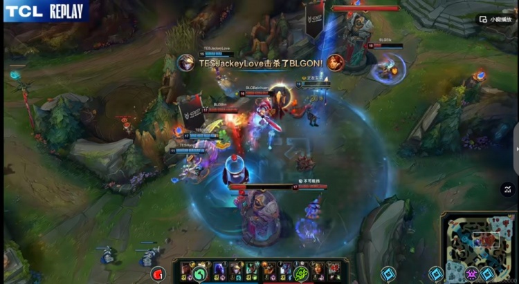 [27:05]JackeyLove伊泽瑞尔回城被断,Beichuan巨魔吸一口将他强杀!Bin鳄鱼绕后切死Hang卡尔玛!BLG打出0换2,回头开打大龙!TES想阻止但是369奎桑提+Kanavi潘森都被BLG抱团强行留住!BLG相当于是0换4!随后knight阿萝拉再次罩大配合队友抓死Hang卡尔玛,连续减员TES回头!BLG终于可以拿下大龙!