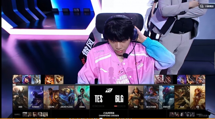 BLG:上单Bin、打野Beichuan、中单knight、下路Elk、辅助ON