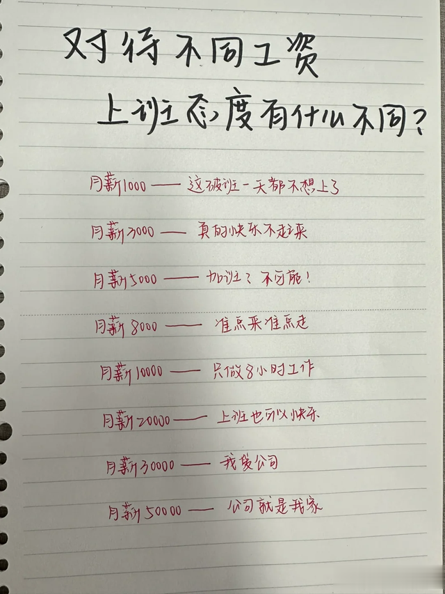同样,在职场上也是类似的情况,不同的工资,大家对待领导,对待老板和公司的态度就是不同的。