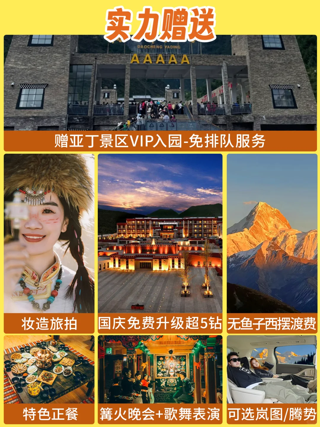 🚌稻城亚丁 VIP 快速入园:不用在景区门口排长队!用完早餐直接搭乘 VIP 专属大巴进景区,省去检票排队的麻烦,比普通游客更多游玩时间,旺季也能从容开启旅程~