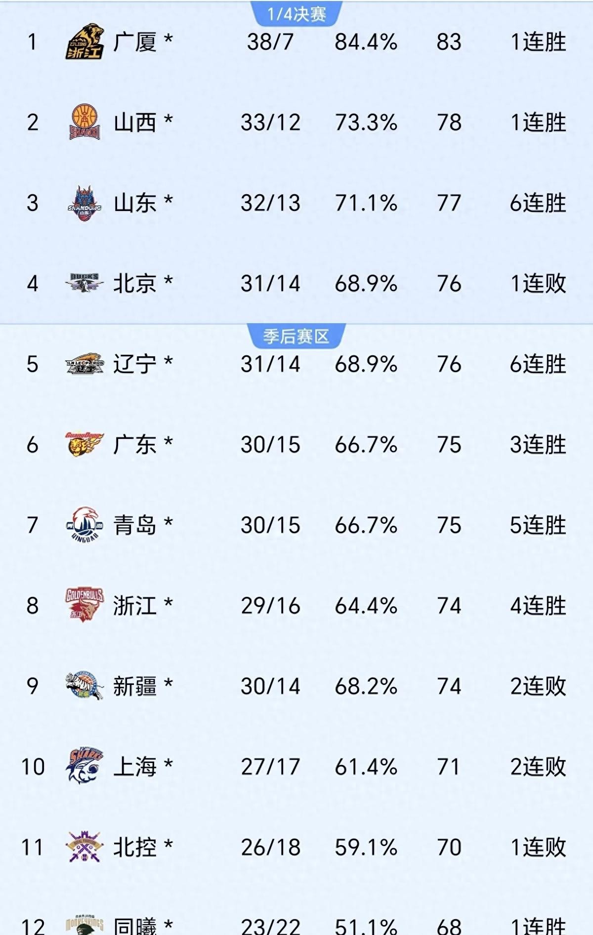 眼看着常规赛接近尾声,季后赛的卡位战也进入白热化阶段。辽宁、广东、青岛,这三支球队现在正焦头烂额地想方设法在积分榜上争取有利位置。 第五名?这可是个关键位置,因为这意味着在第二轮就要遭遇实力强劲的广厦!想想看,提前遇到广厦,这对于任何一支球队来说,都是极大的挑战。 这可不是闹着玩的,这关系到整个季后赛的走势啊!